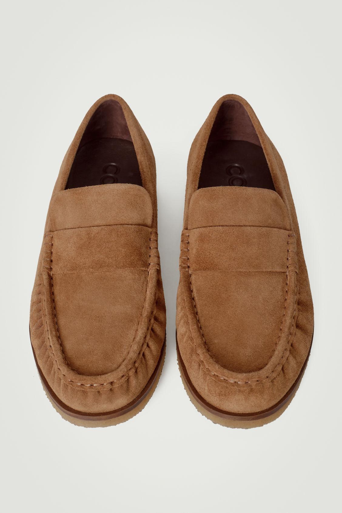 A sophisticated take on classic loafers, these modern shoes are understated yet refined. They're crafted from supple suede in a rich tan shade and finished with moccasin-style stitching and rubber soles. COS supports responsible manufacturing via the Leather Working Group Upper, lining and sock: 100% Leather. Sole: 100% Natural rubber. Excluding trims