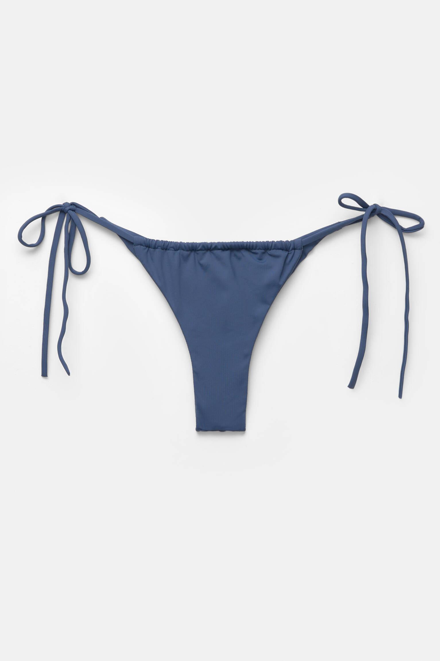 Thong bikini bottoms with gathered detail and side knot fastening.