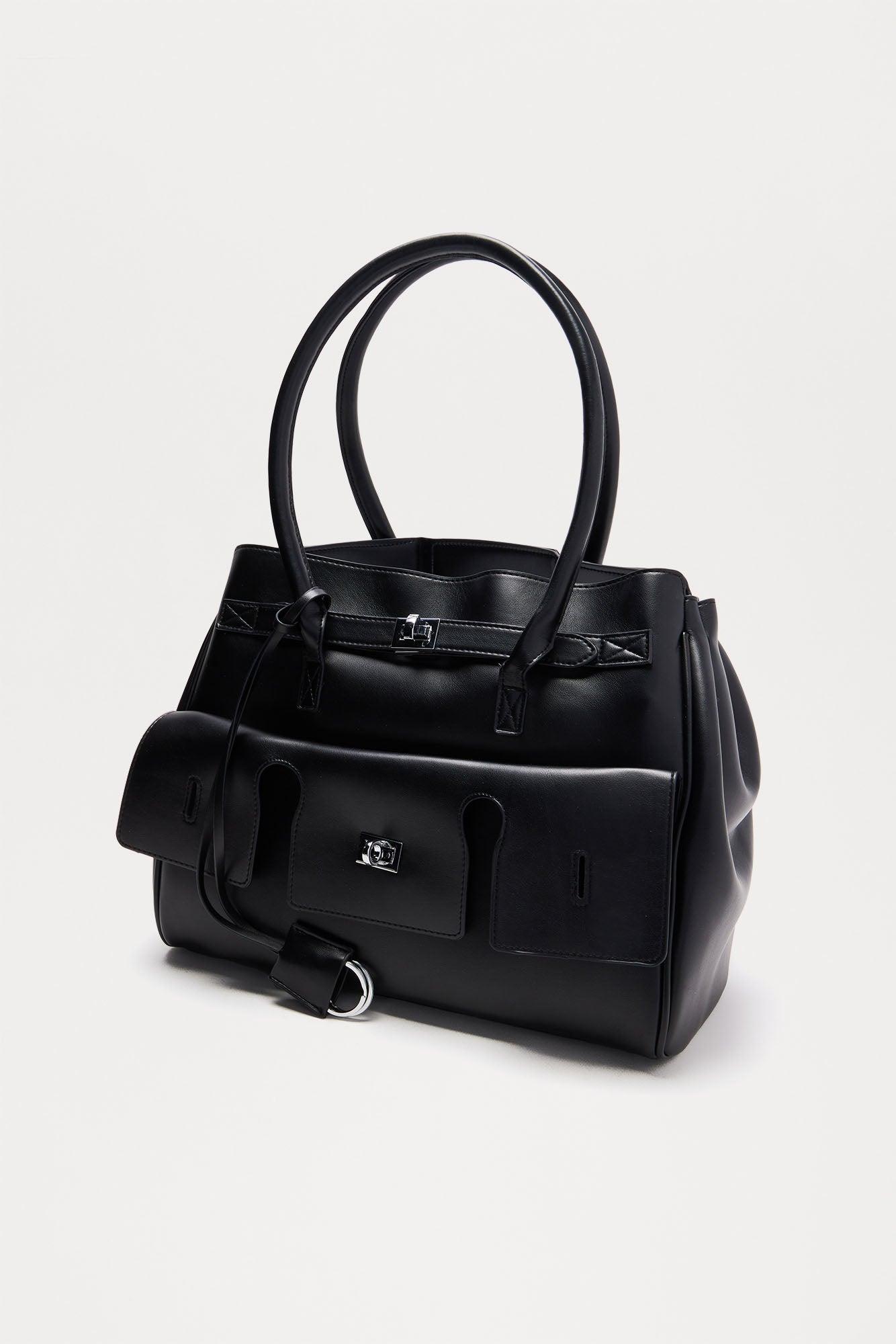 Gave My All Oversized Faux Leather Tote Bag - Black/Silver Female