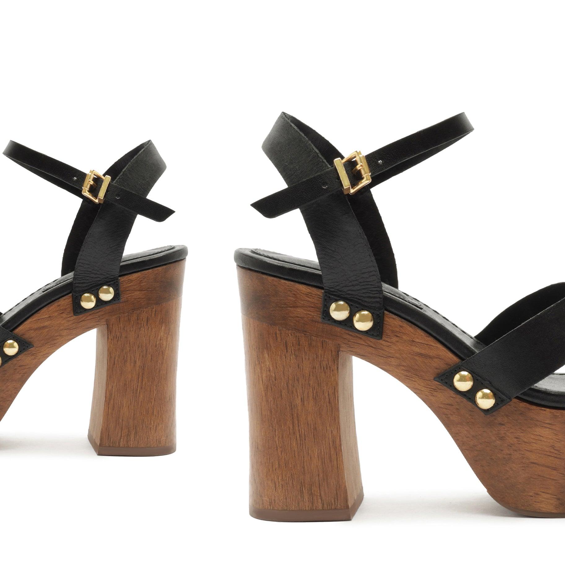 Channel a retro mood in the Gaylah Sandal. This so-now silhouette is crafted from leather set on a wooden platform. Material: Leather Platform sandal Buckled strap at the ankle Square-shaped open toe Block high-heel Heel height: 4.7in | 120mm SKU: S2095500080007