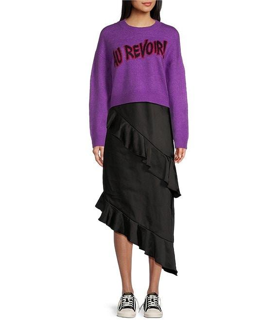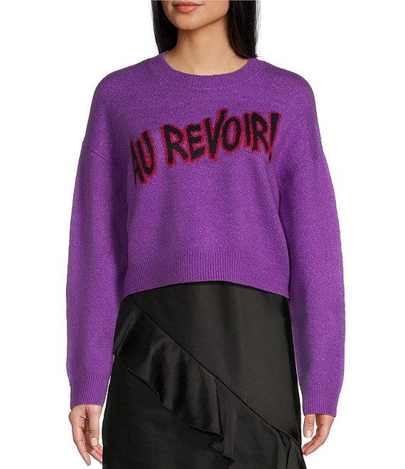 From GB, this sweater features: Crew neckline Long sleeves Ribbed cuffs "Au Revoir" verbiage on the front Approx. 20" length from shoulder to hem Pullover styling Acrylic/polyester/spandex Hand wash cold/dry flat Imported.
