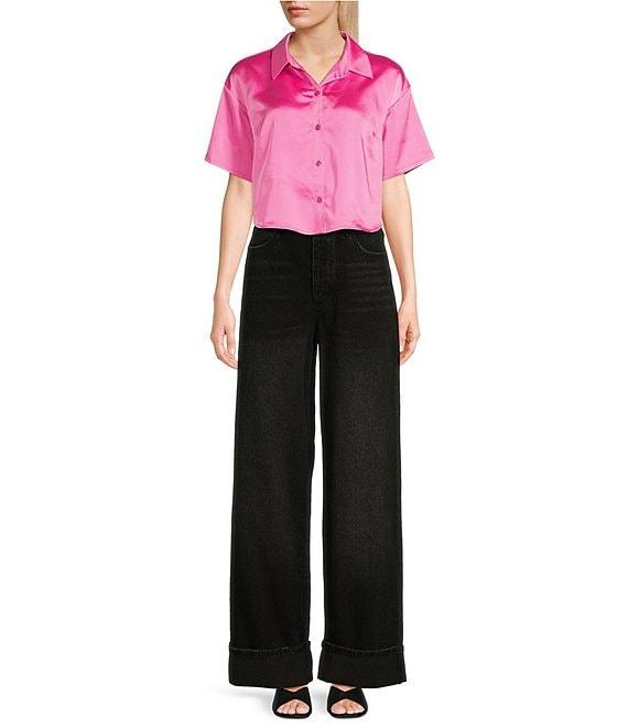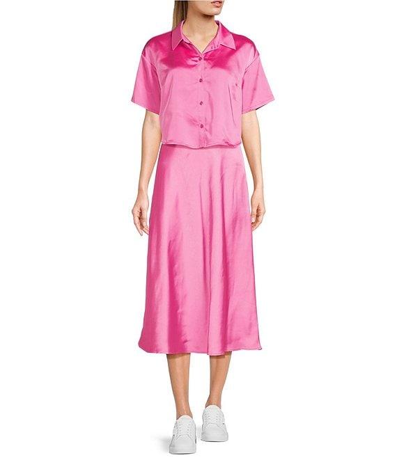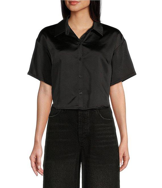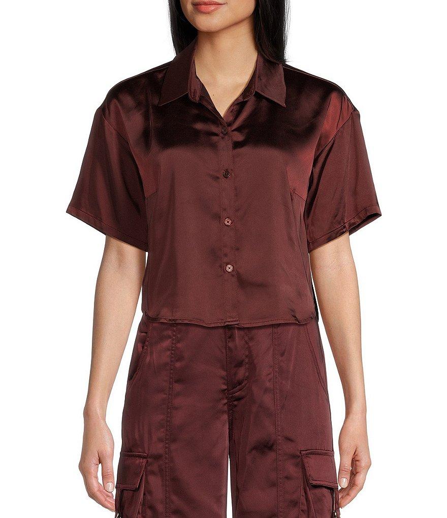 GB Coordinating Satin Short Sleeve Button Front Blouse