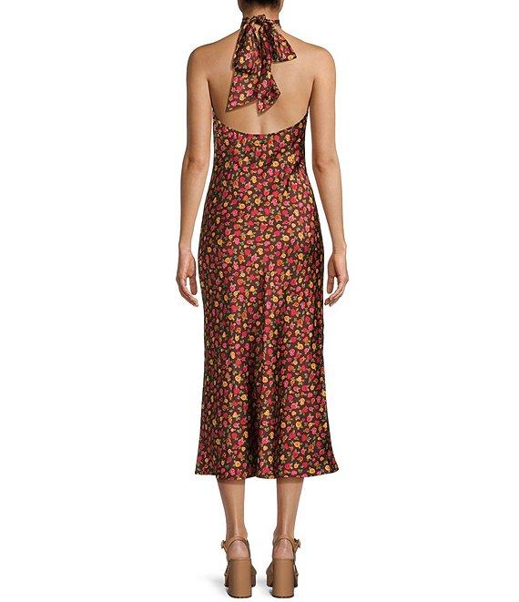 GB Floral Printed Satin Tie Neck Halter Dress