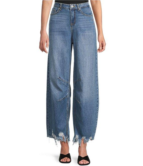 Prosperity Denim Mid Rise Frayed Hem Barrel Jeans