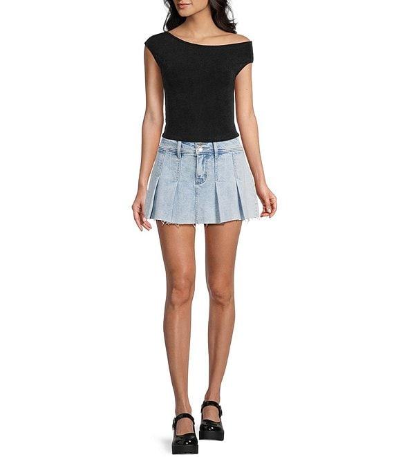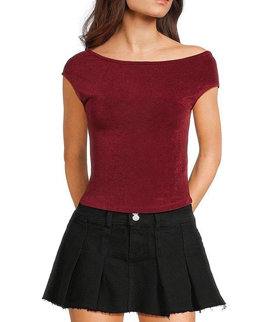 From GB, this top features: Knit fabrication Asymmetric scoop neckline Cap sleeves Fitted silhouette Pullover styling Straight hem Polyester/spandex Machine wash/line dry Imported.