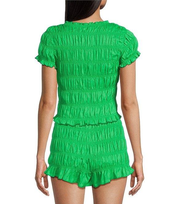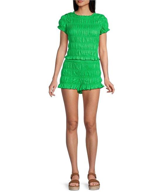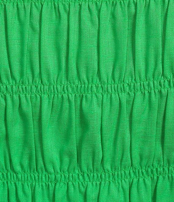 GB Linen Blend Smocked High Crew Neck Short Sleeve Coordinating Tee