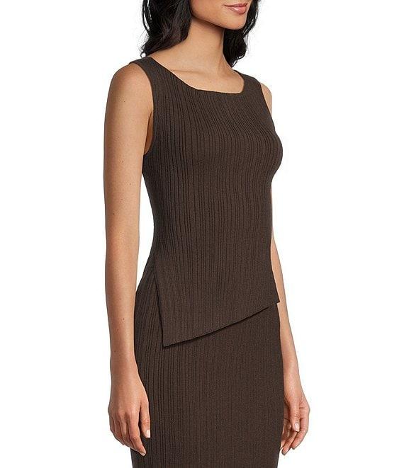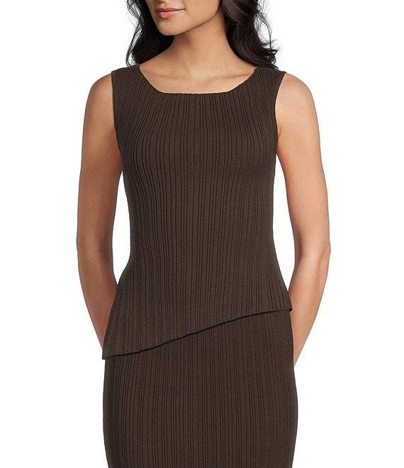 GB Ribbed Knit Asymmetrical Boat Neck Coordinating Tank