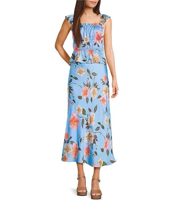 GB Satin Floral Print Coordinating Maxi Skirt