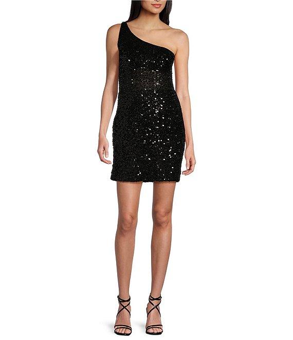 From GB Social, this dress features: Mesh with sequins One-shoulder neckline Sleeveless Side zip closure Mini length Polyester Skirt lined in polyester Spot clean only Imported.
