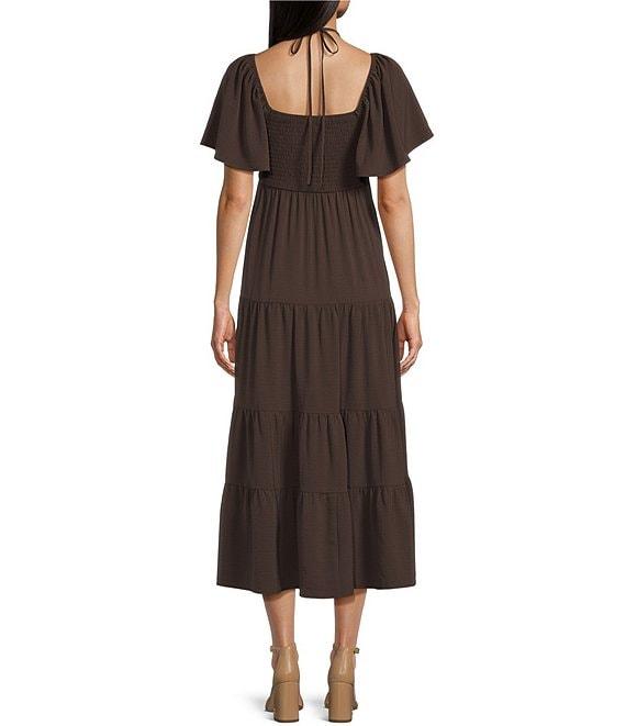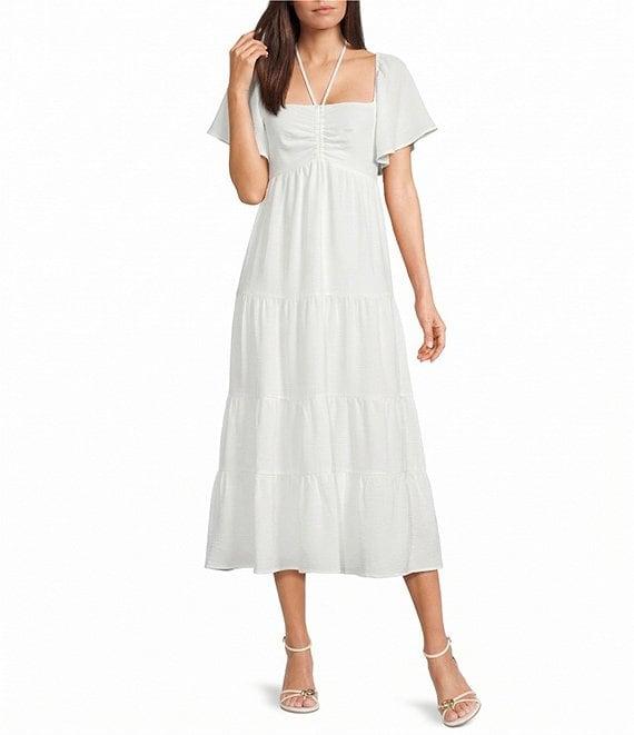GB Tie Neck Short Sleeve Tiered Maxi Dress
