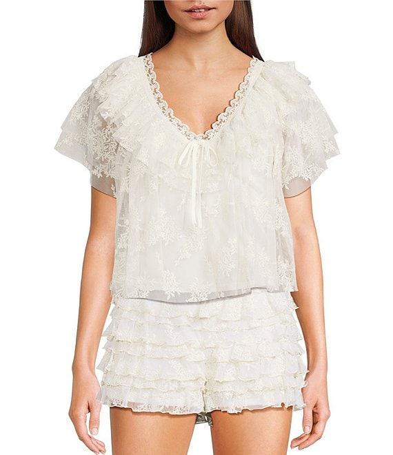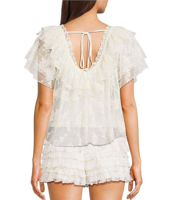 GB V-Neck Lace Embroidered Mesh Coordinating Blouse