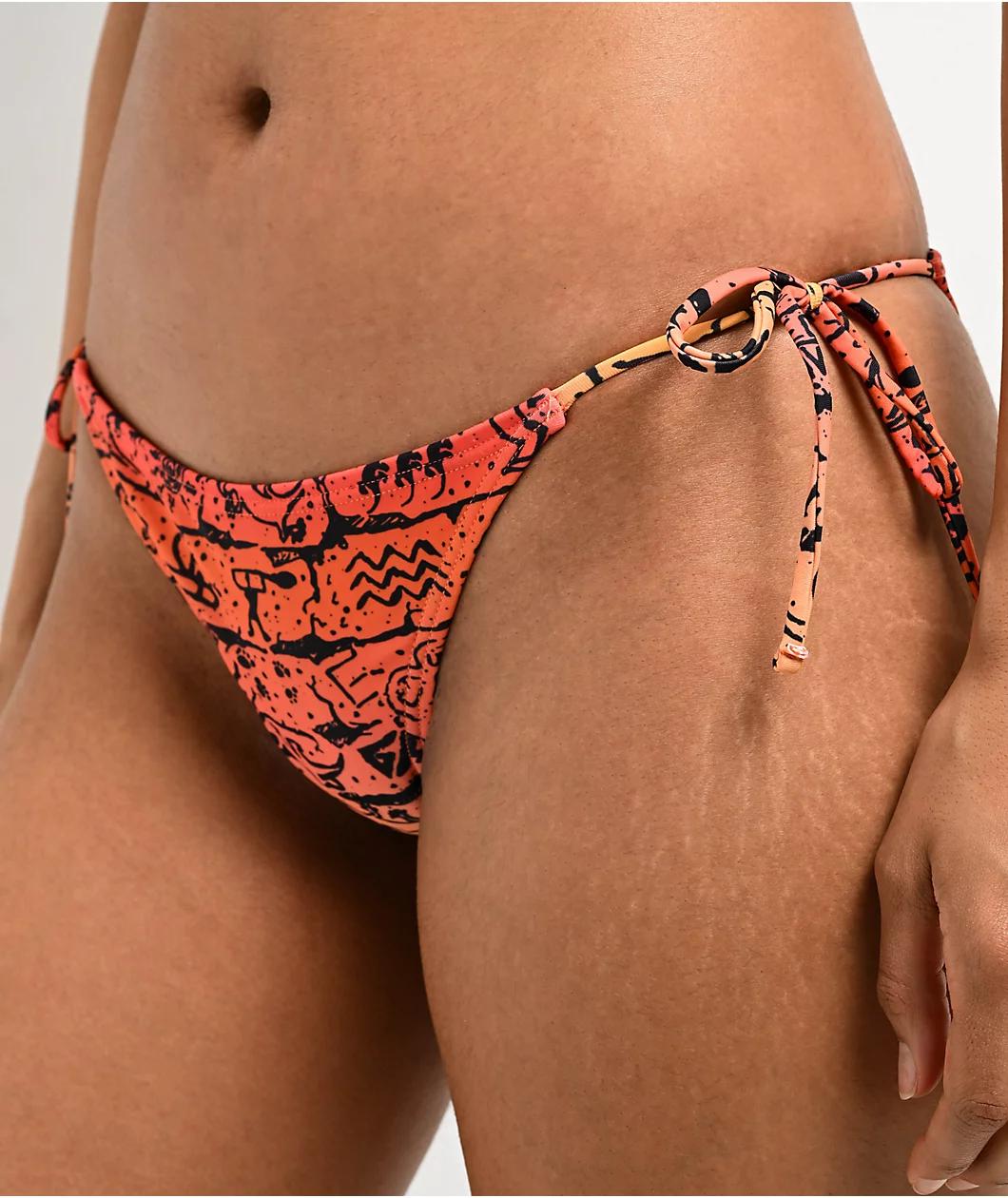 Designed by Gecko Hawaii in an orange colorway, the Petro Wall bikini bottom arrives in a super cheeky silhouette with an artistic sublimated print throughout.