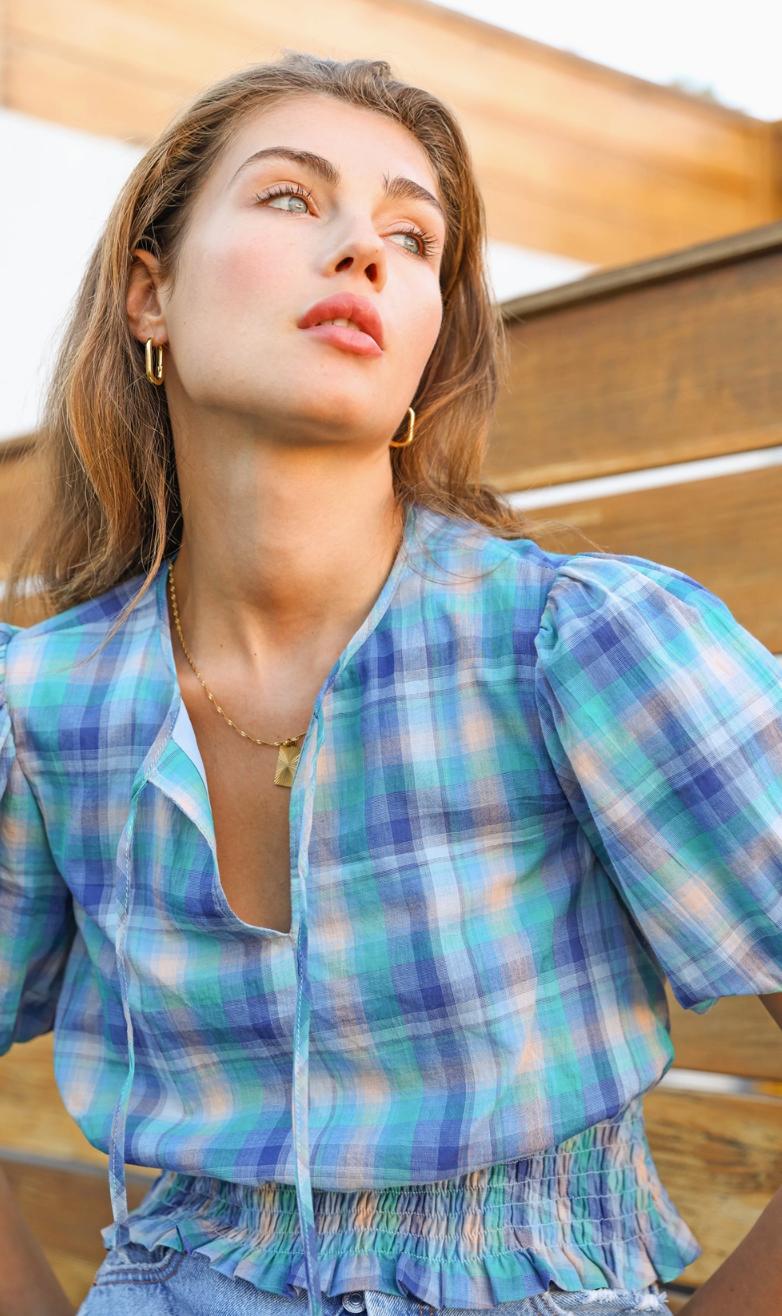 Ruby Rd. Hello Spring Plaid Crew Neck 3/4 Sleeve Knit Top