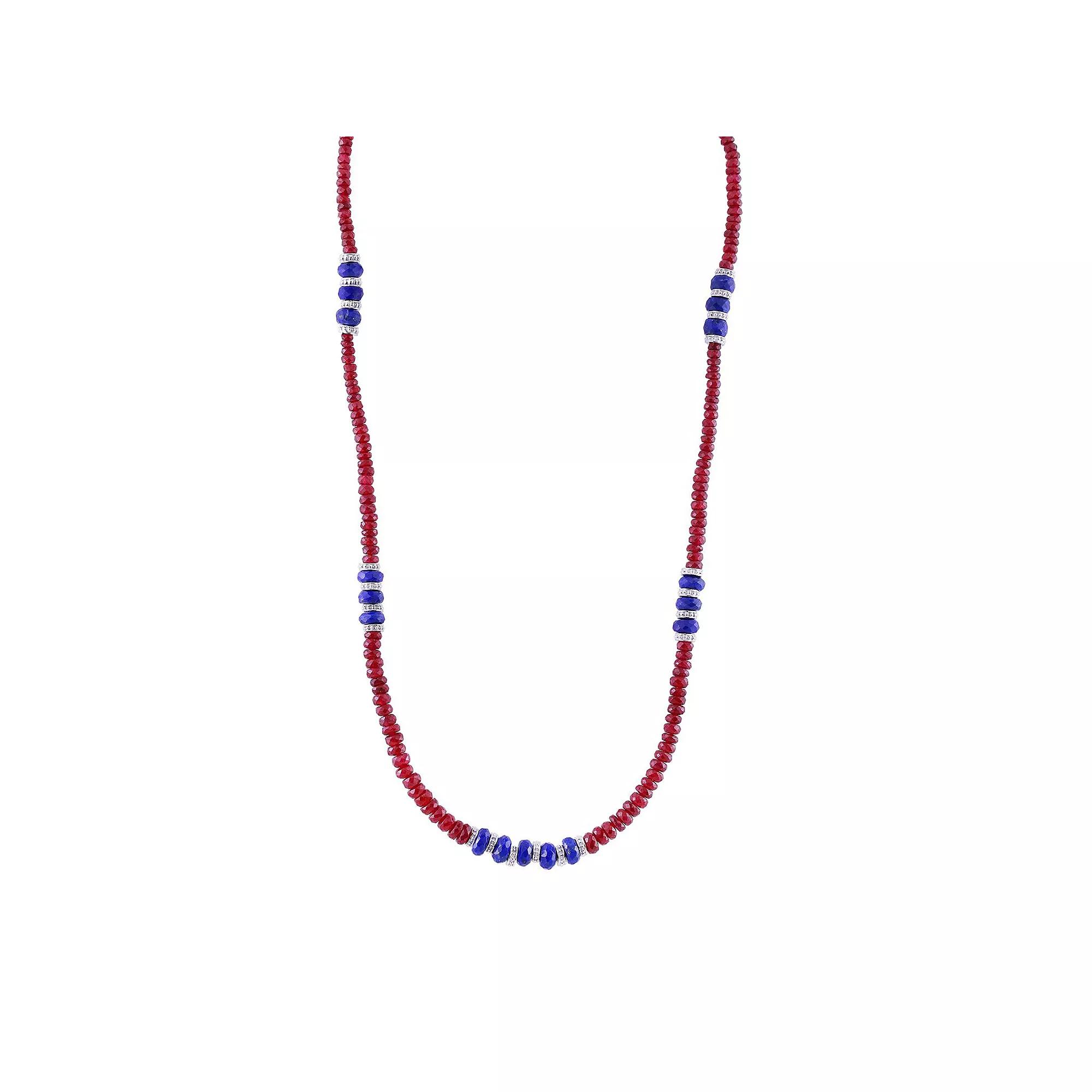 Accent your ensemble with this Gemistry Sterling Silver Gemstone Beaded Necklace. Click on this JEWELRY & WATCHES GUIDE to learn about fit, styles, materials and more! Accent your ensemble with this Gemistry Sterling Silver Gemstone Beaded Necklace. Click on this JEWELRY & WATCHES GUIDE to learn about fit, styles, materials and more! FEATURES Chain length: 18 in. Clasp: lobster-claw Nickel free Metal: sterling silver Finish: polished Packaging: velvety pouch ImportedSTONE DETAILS Stone type: ruby, emerald, lapis lazuli Center stone size: 5 mm x 6 mm Shape: bead Gemstones may have been treated to enhance their appearance. Special care may be required. Please visit our Gemstone Treatment & Special Care Guide for more information. Size: 18. Color: Ruby Lapis. Gender: female. Age Group: adult.