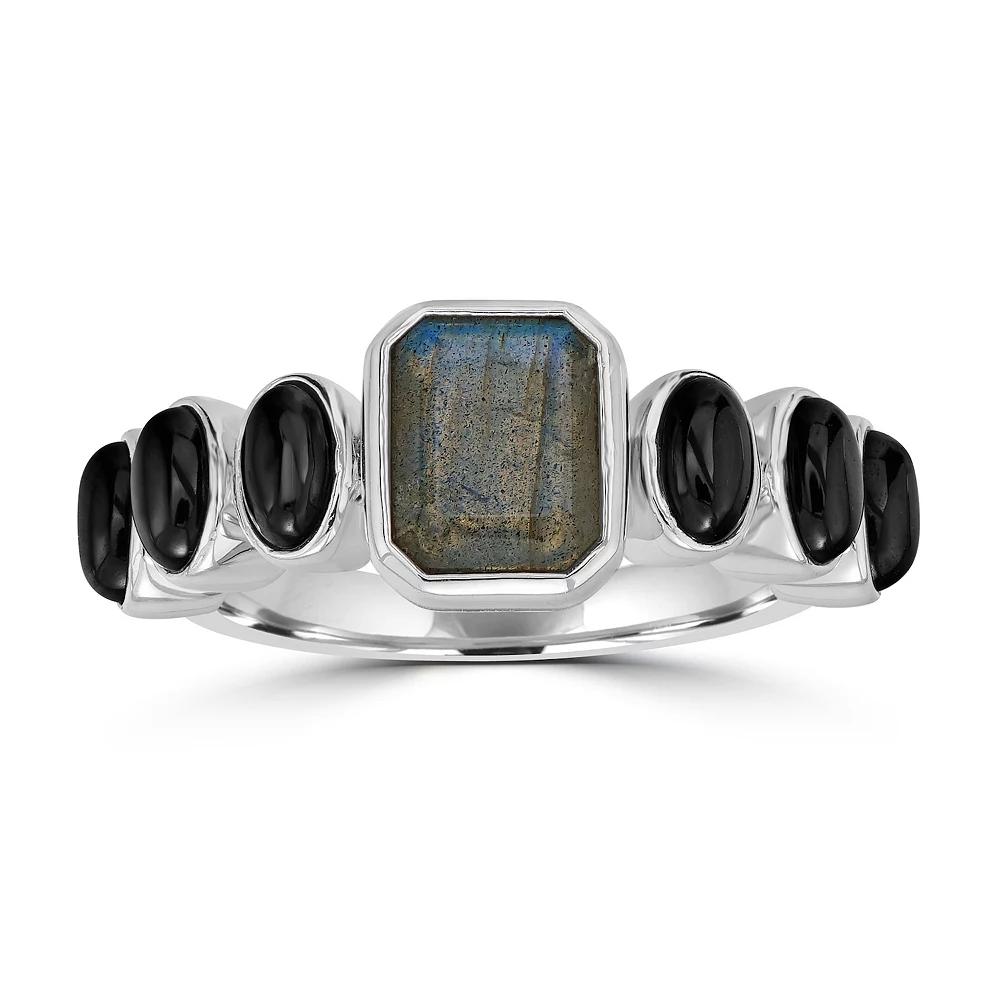 Accent your look with this unique Gemistry Sterling Silver Genuine Labradorite Emerald Cut Ring. Click on this JEWELRY & WATCHES GUIDE to learn about fit, styles, materials and more! Accent your look with this unique Gemistry Sterling Silver Genuine Labradorite Emerald Cut Ring. Click on this JEWELRY & WATCHES GUIDE to learn about fit, styles, materials and more! FEATURES Shank style: tapered Band fit: flat Nickel free Metal: sterling silver Finish: polished Packaging: velvety pouch ImportedSTONE DETAILS Stone type: labradorite Total weight: 4 1/5 ct. Center stone weight: 1 5/8 ct. Center stone size: 6 mm x 8 mm Shape: cushion cut Setting: bezel Gemstones may have been treated to enhance their appearance. Special care may be required. Please visit our Gemstone Treatment & Special Care Guide for more information. Color: Blulabradoritee. Gender: female. Age Group: adult.