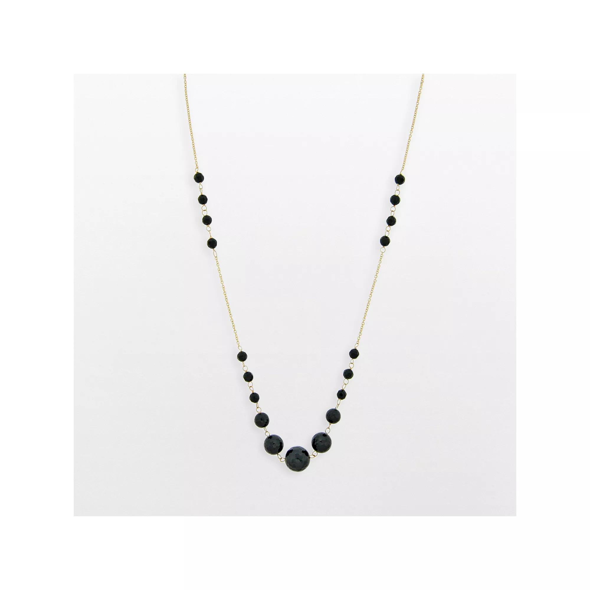 Add sparkle to your ensemble with this black onyx bead necklace. Necklace Details: Length: 18 in. Clasp: spring-ring Metal: 10k goldStone Details: Stone type: genuine black onyx Cut:faceted bead Size: 18. Gender: female. Age Group: adult.