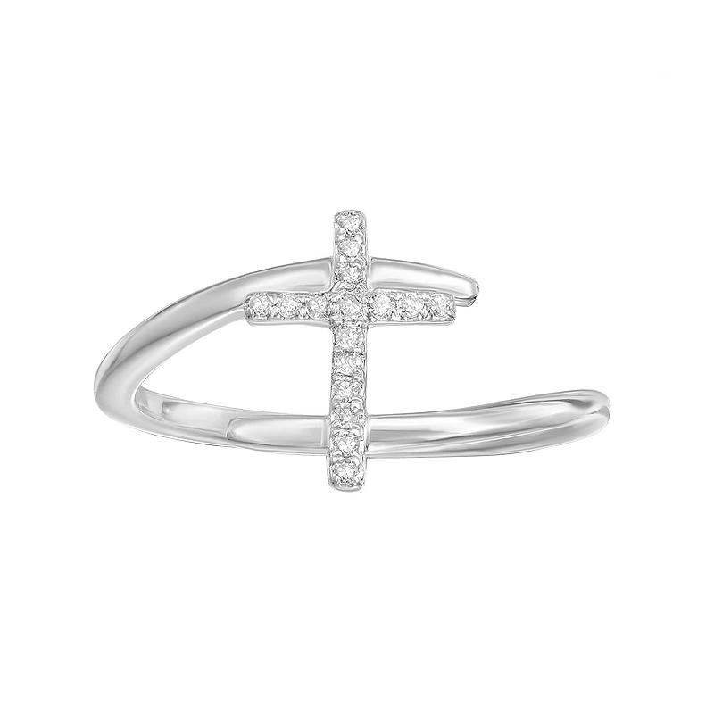 This gorgeous 10k gold diamond accent bypass ring is a must-add to your fine jewelry collection. This gorgeous 10k gold diamond accent bypass ring is a must-add to your fine jewelry collection. Width: 11 mm Metal: 10k gold Plating: rhodium Finish: polished Packaging: boxedDIAMOND DETAILS Total weight: less than 1/10 ct. Shape: round Setting: prong Diamond weights are approximate. Diamond total weights may vary between .01 and .08 ct. Some diamonds have fewer than 17 facets. Gemstones may have been treated to enhance their appearance. Special care may be required. Please visit our Gemstone Treatment & Special Care Guide for more information. Image(s) may be enlarged to show detail. Please note, due to the high value of this item, a signature may be required upon delivery. Size: 5. Color: White. Gender: female. Age Group: adult.