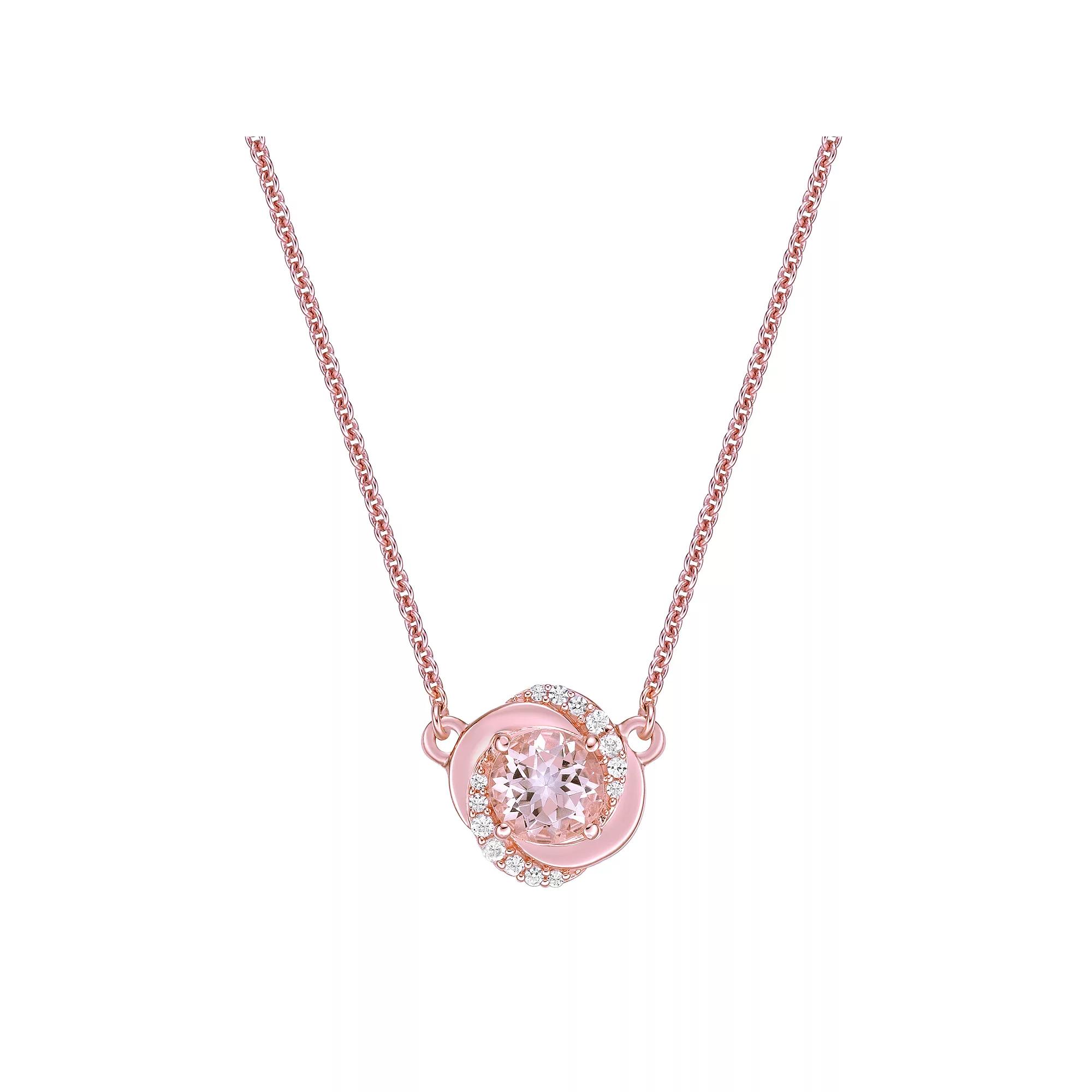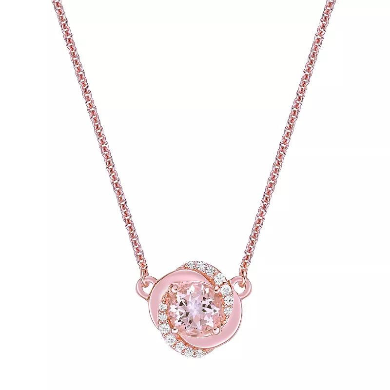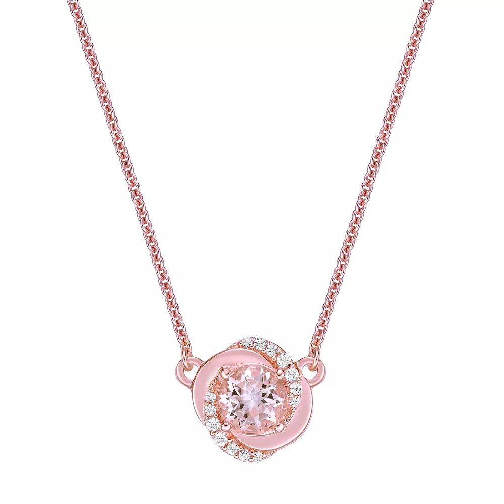Add a sweet touch of elegance to any ensemble with this lovely 10k rose gold Gemminded diamond and morganite-embellished rosette necklace. Click on this JEWELRY & WATCHES GUIDE to learn about fit, styles, materials and more! Add a sweet touch of elegance to any ensemble with this lovely 10k rose gold Gemminded diamond and morganite-embellished rosette necklace. Click on this JEWELRY & WATCHES GUIDE to learn about fit, styles, materials and more! SETUP INFORMATION Genuine MorganiteFEATURES Pendant dimensions: 0.43 in. x 0.43 in. Chain length: 18 in. Chain type: cable Clasp: spring-ring Nickel free Metal: 10k rose gold Finish: polished Packaging: boxed ImportedSTONE DETAILS Stone type: morganite Total weight: 3/4 ct. Center stone size: 6 mm x 6 mm Shape: round Setting: prongDIAMOND DETAILS Total weight: 1/10 ct. Color grade: H-I Clarity: I2-I3 Shape: round Setting: prong Diamond weights are approximate. Diamond Total Weights may vary between .01 and .13 ct. Some diamonds consist of fewer than 17 facets. Gemstones may have been treated to enhance their appearance. Special care may be required. Please visit our Gemstone Treatment & Special Care Guide for more information. Image(s) may be enlarged to show detail. Size: 18. Gender: female. Age Group: adult.