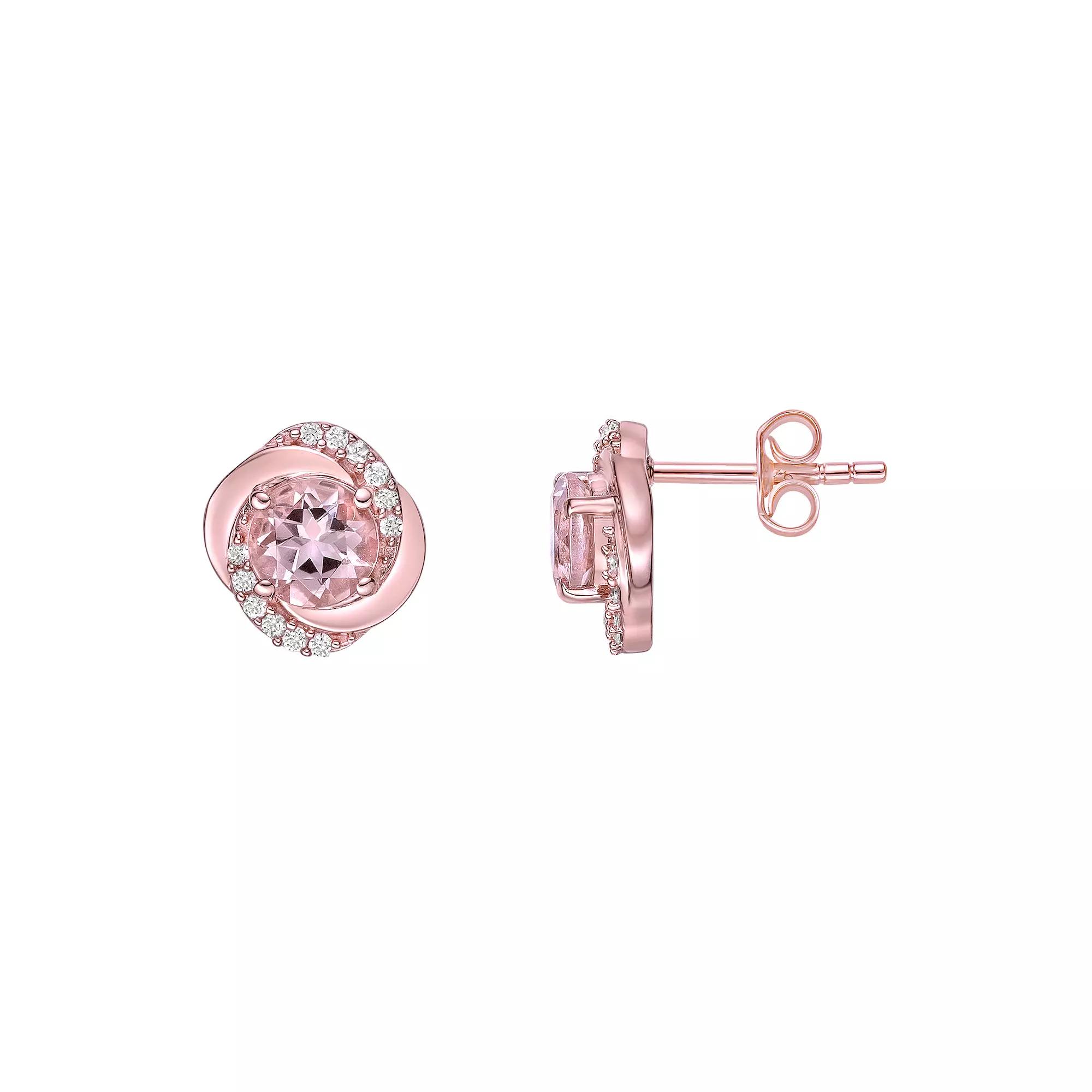 Add a sweet touch of elegance to any ensemble with these lovely 10k rose gold Gemminded diamond and morganite-embellished rosette stud earrings. Click on this JEWELRY & WATCHES GUIDE to learn about fit, styles, materials and more! Add a sweet touch of elegance to any ensemble with these lovely 10k rose gold Gemminded diamond and morganite-embellished rosette stud earrings. Click on this JEWELRY & WATCHES GUIDE to learn about fit, styles, materials and more! FEATURES Diameter: 10 mm Backings: post Nickel free Metal: 10k rose gold Finish: polished Packaging: boxed ImportedSTONE DETAILS Stone type: morganite Total weight: 7/8 ct. Center stone weight: 3/8 ct. Center stone size: 5 mm x 5 mm Shape: round Setting: prongDIAMOND DETAILS Total weight: 1/10 ct. Color grade: H-I Clarity: I2-I3 Shape: round Setting: prong Diamond weights are approximate. Diamond Total Weights may vary between .01 and .13 ct. Some diamonds consist of fewer than 17 facets. Gemstones may have been treated to enhance their appearance. Special care may be required. Please visit our Gemstone Treatment & Special Care Guide for more information. Image(s) may be enlarged to show detail. Size: One Size. Gender: female. Age Group: adult.
