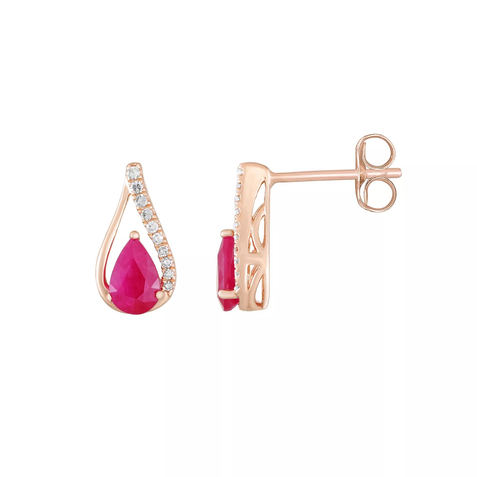 Gemminded 10k Rose Gold Ruby & Diamond Accent Drop Earrings, Women's