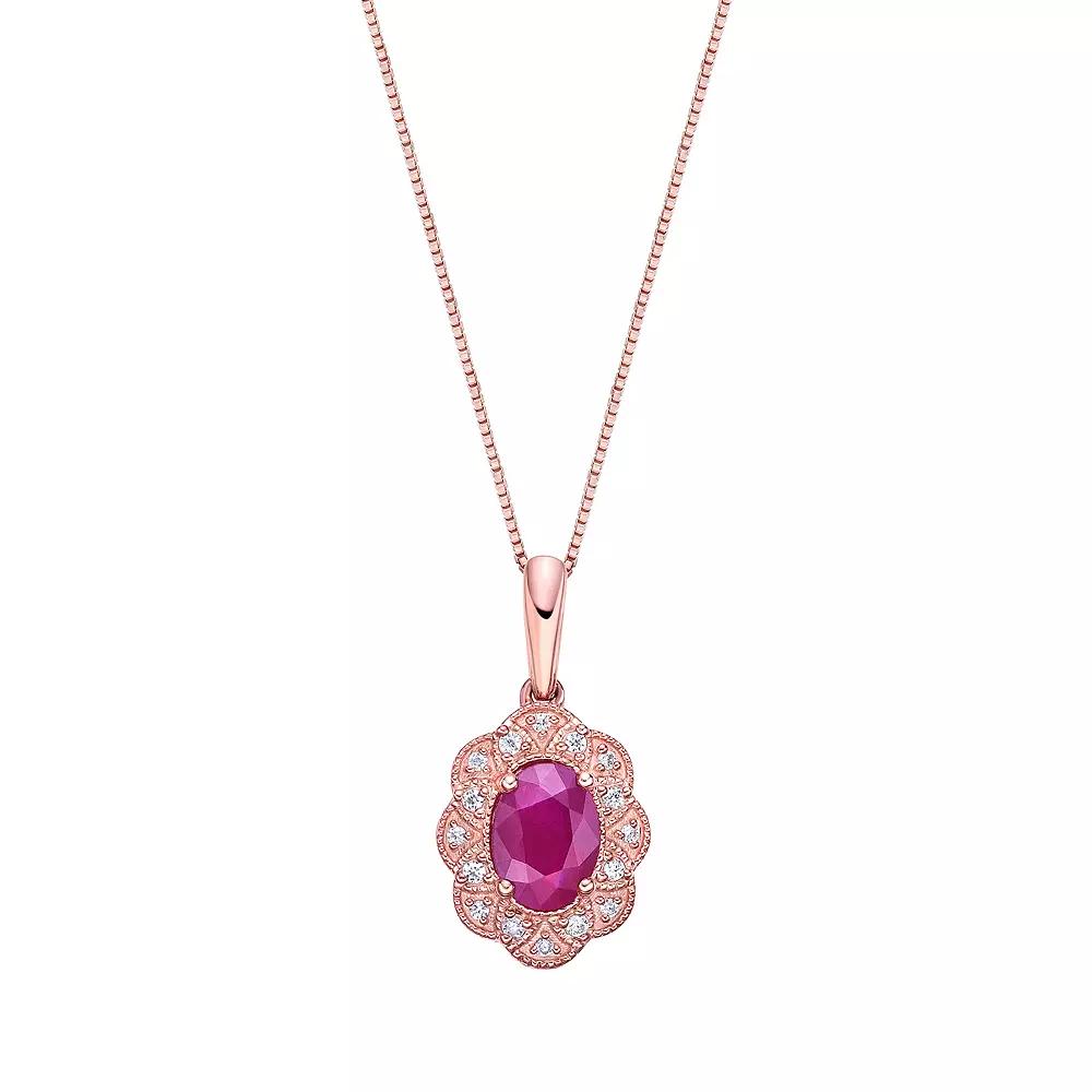 Gemminded 10k Rose Gold, Ruby & Diamond Accent Pendant Necklace, Women's,  Product Image