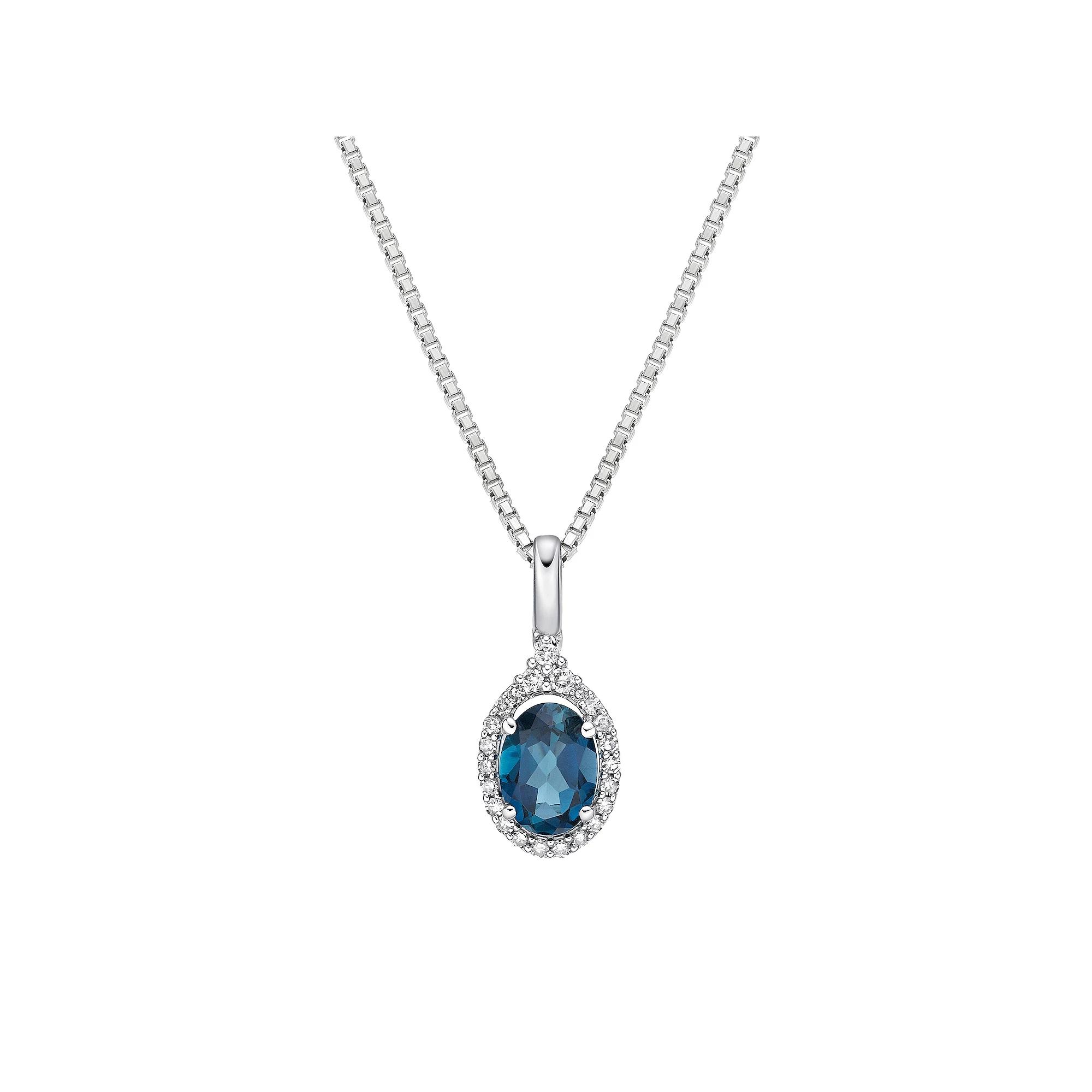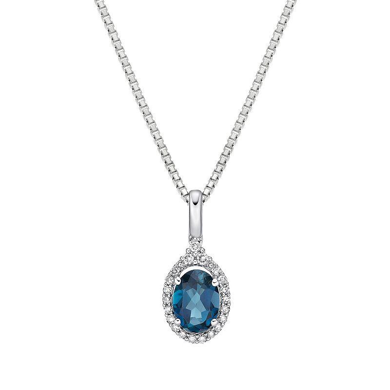 Gemminded 10k White Gold 1/6 Carat T.W. Diamond & London Blue Topaz Pendant Necklace, Women's,