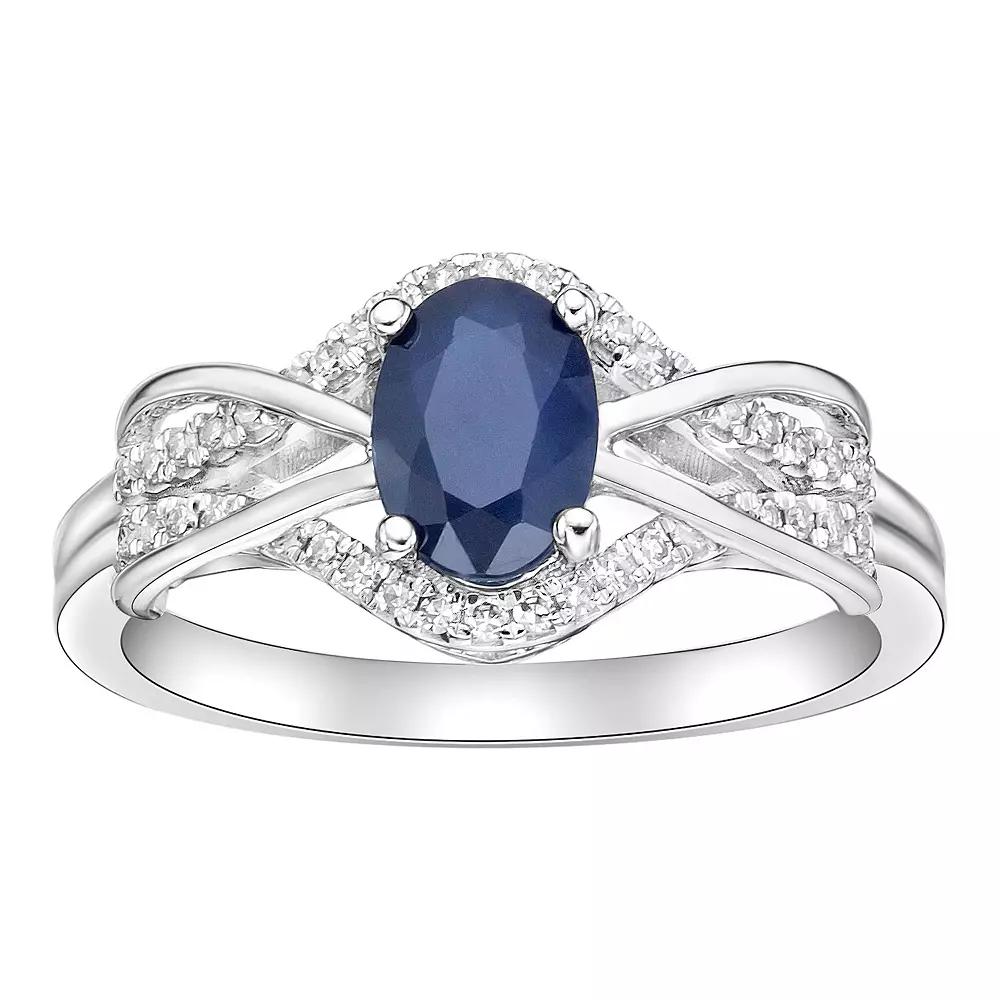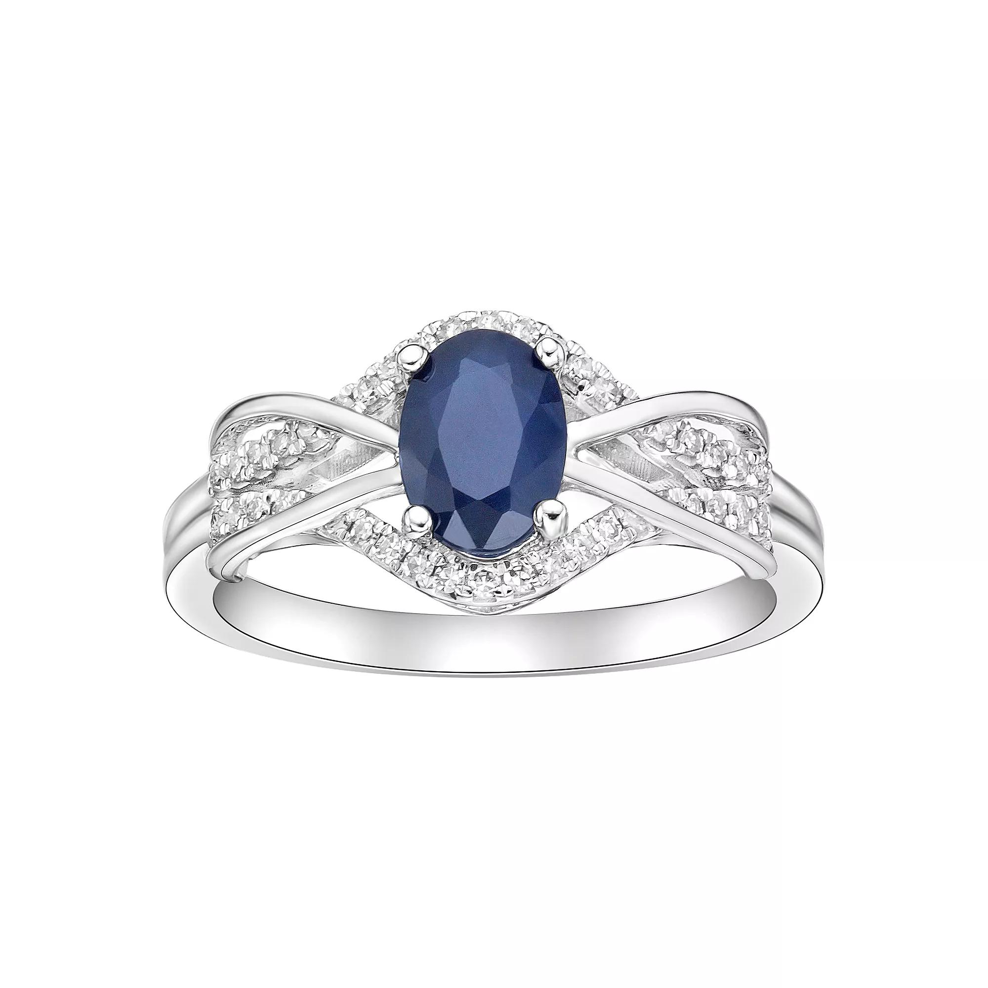 Gemminded 10k White Gold 1/6 Carat T.W. Diamond & Sapphire Ring, Women's,