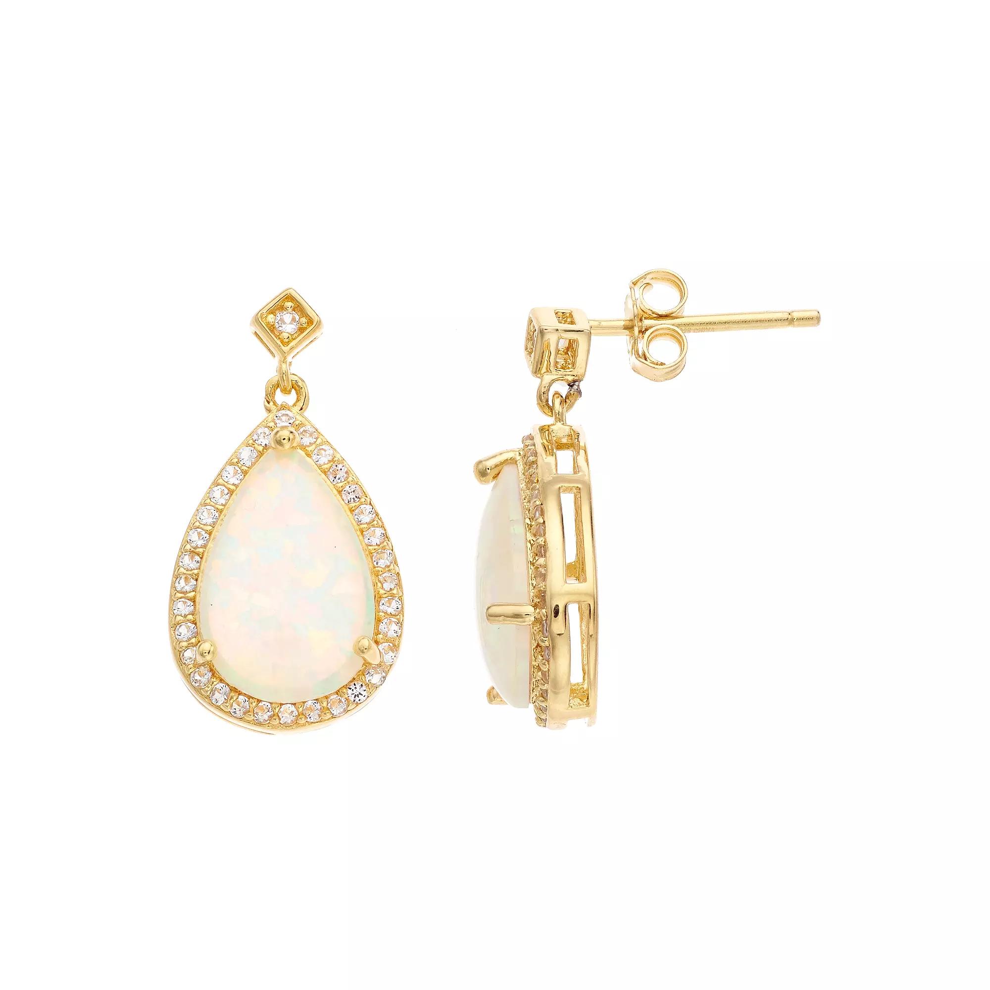 2 Micron Gold Plated Silver Earrings with 12X8mm Pear Created Opal and White Topaz | Belk & Co Lab Created 2.6 Ct. T.w. Lab-Created Opal And 5/8 Ct. T.w. White Topaz Earrings In Gold Plated Sterling Silver