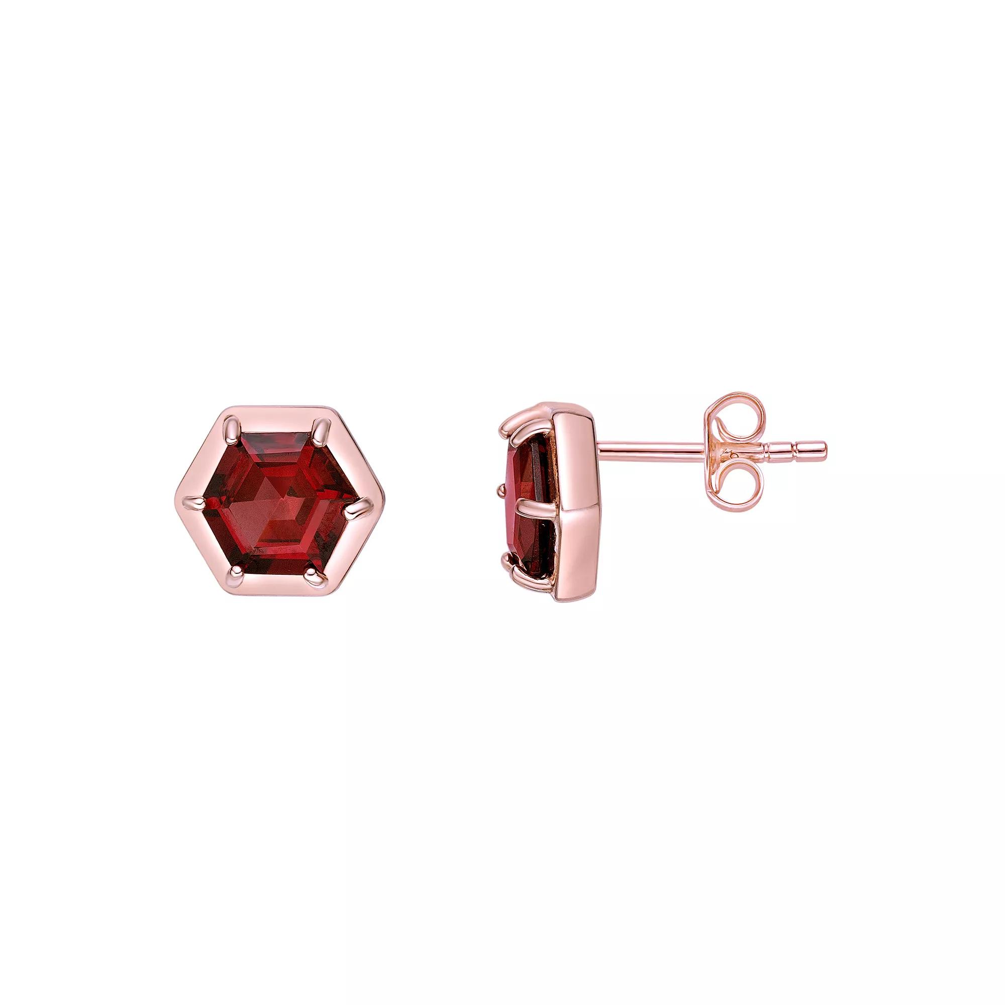 Accessorize in style with these Gemminded 18k Rose gold over sterling silver garnet stud earrings. Click on this JEWELRY & WATCHES GUIDE to learn about fit, styles, materials and more! Accessorize in style with these Gemminded 18k Rose gold over sterling silver garnet stud earrings. Click on this JEWELRY & WATCHES GUIDE to learn about fit, styles, materials and more! FEATURES Dimensions: 8.5 mm x 8.5 mm Backings: post Nickel safe Metal: sterling silver Plating: 18k rose gold Finish: polished Packaging: boxedSTONE DETAILS Stone type: garnet Total weight: 1 ct. Shape: hexagon Setting: bezel Gemstones may have been treated to enhance their appearance. Special care may be required. Please visit our Gemstone Treatment & Special Care Guide for more information. Size: One Size. Color: Rose Tone. Gender: female. Age Group: adult.