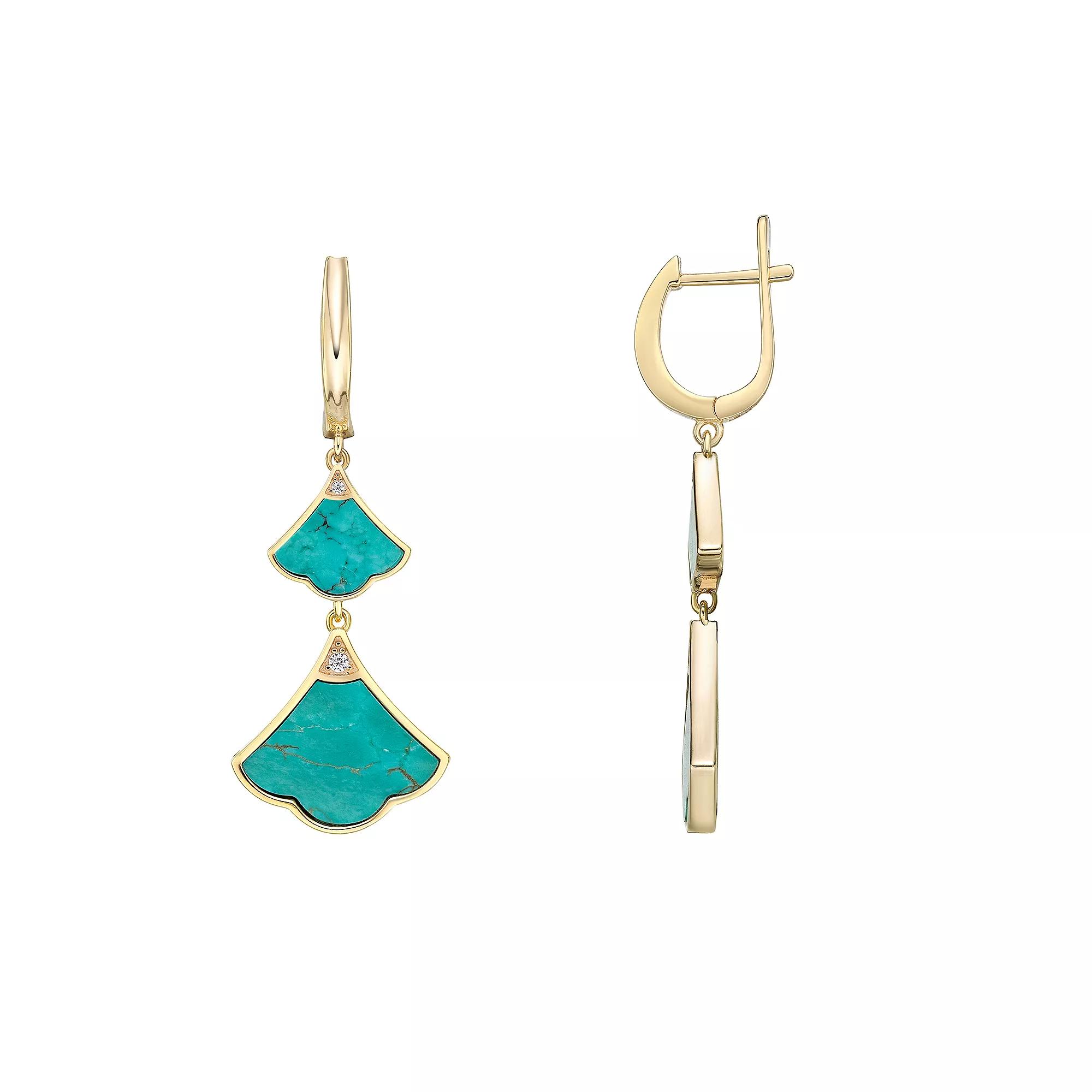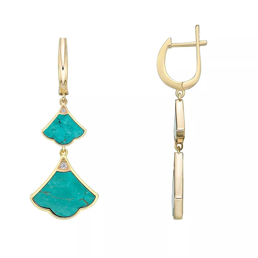 You'll love your look even more while wearing these gorgeous gold over sterling silver turquoise and cubic zirconia double drop earrings. You'll love your look even more while wearing these gorgeous gold over sterling silver turquoise and cubic zirconia double drop earrings. Length: 42 mm Backings: latch back Metal: sterling silver Plating: gold tone Finish: polished Packaging: boxedSTONE DETAILS Stone type: cubic zirconia, turquoise Total weight: 1 ct. Shape: round Setting: bezel, prong Gemstones may have been treated to enhance their appearance. Special care may be required. Please visit our Gemstone Treatment & Special Care Guide for more information. Please note, due to the high value of this item, a signature may be required upon delivery. Size: One Size. Color: Blue. Gender: female. Age Group: adult.