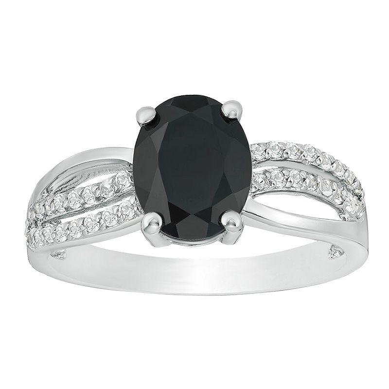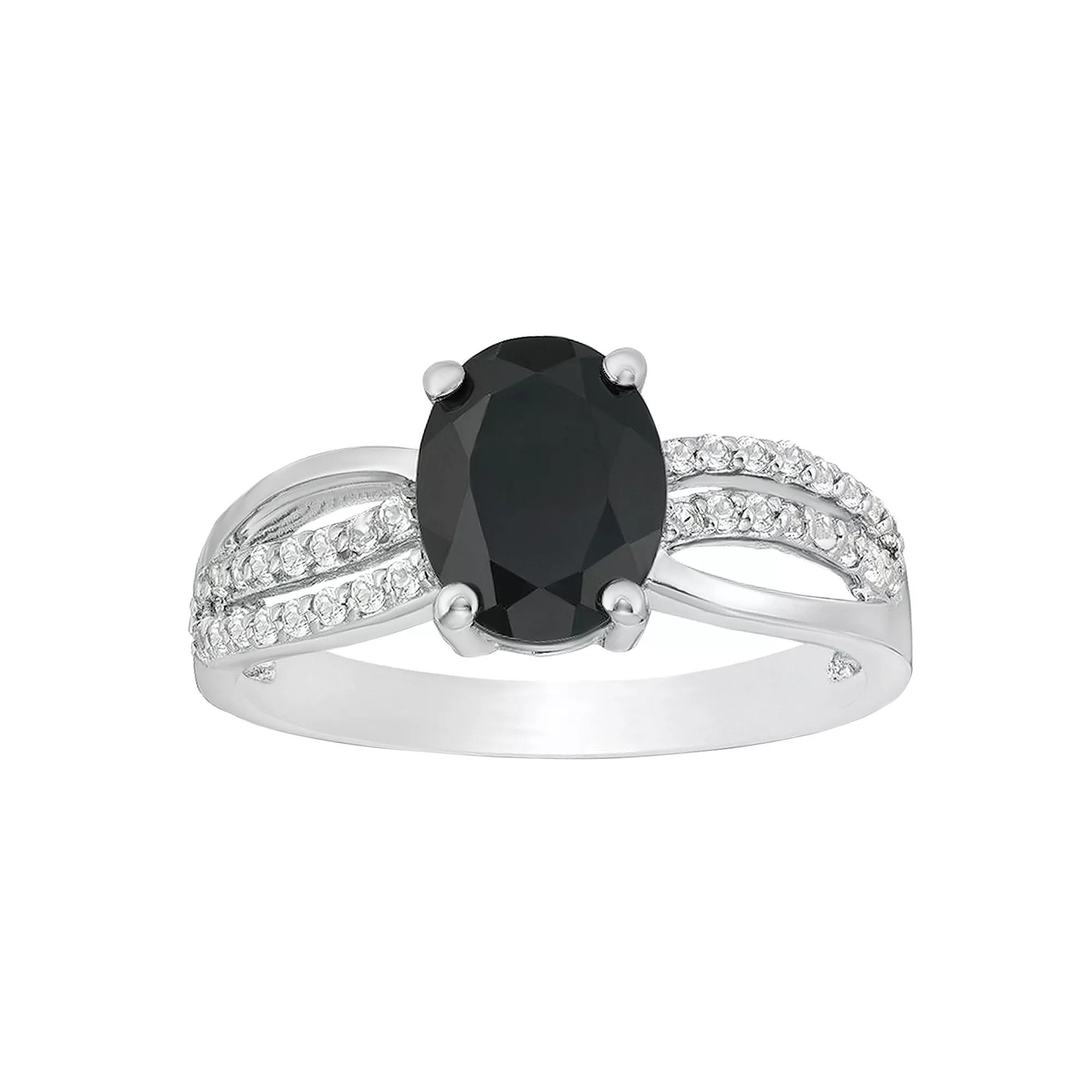 This gorgeous sterling silver black onyx and white topaz accent ring is the perfect way to finish any outfit. This gorgeous sterling silver black onyx and white topaz accent ring is the perfect way to finish any outfit. Width: 9 mm Metal: sterling silver Plating: rhodium Finish: polished Packaging: boxedSTONE DETAILS Stone type: black onyx Total weight: 1 5/8 ct. Center stone size: 9 mm x 7 mm Shape: oval Setting: prong Gemstones may have been treated to enhance their appearance. Special care may be required. Please visit our Gemstone Treatment & Special Care Guide for more information. Please note, due to the high value of this item, a signature may be required upon delivery. Gender: female. Age Group: adult.