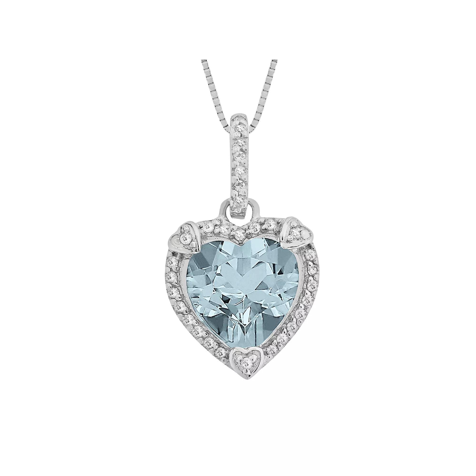 Gemminded Sterling Silver Lab-Created Aquamarine and Diamond Accent Heart Frame Pendant, Women's,