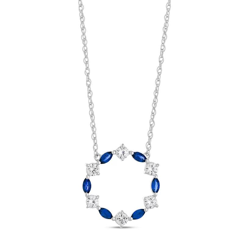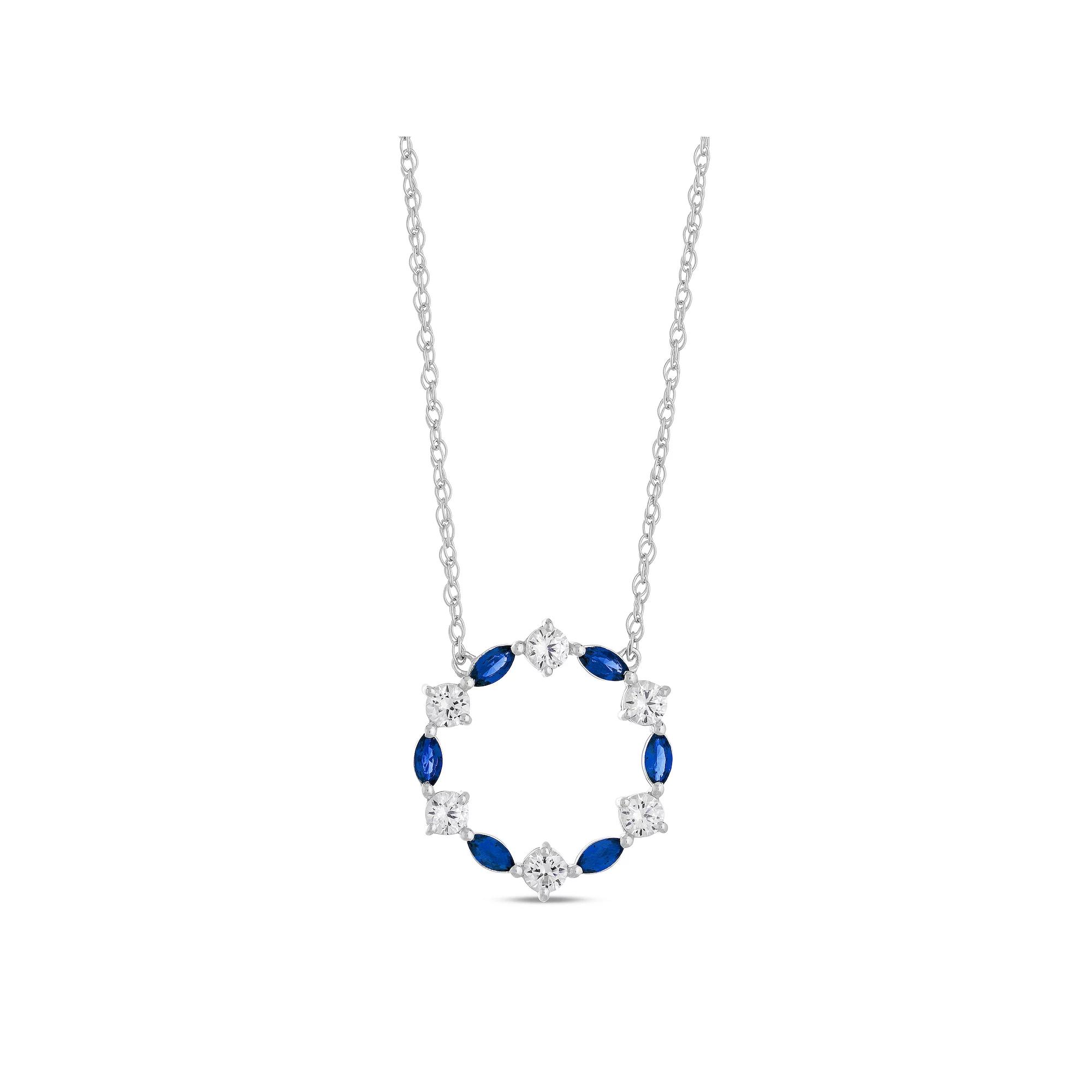 Get sparkling shine with this beautifully elegant Gemminded Sterling Silver Lab-Created Gemstone & Lab-Created White Sapphire Pendant Necklace. Click on this JEWELRY & WATCHES GUIDE to learn about fit, styles, materials and more! Get sparkling shine with this beautifully elegant Gemminded Sterling Silver Lab-Created Gemstone & Lab-Created White Sapphire Pendant Necklace. Click on this JEWELRY & WATCHES GUIDE to learn about fit, styles, materials and more! FEATURES Pendant dimensions: 0.78" x 0.7" Chain length: 18 in. Chain type: cable Clasp: spring-ring Metal: sterling silver Plating: rhodium Finish: polished Packaging: boxed Nickel safe ImportedSTONE DETAILS Stone type: lab-created sapphire, lab-created ruby, lab-created white sapphire Total weight: 1 1/3 ct. Center stone weight: 3/8 ct. Center stone size: 4 mm x 2 mm Shape: marquise, round Setting: prong Gemstones may have been treated to enhance their appearance. Special care may be required. Please visit our Gemstone Treatment & Special Care Guide for more information. Size: 18". Color: Sterling Cr Sapphire. Gender: female. Age Group: adult.
