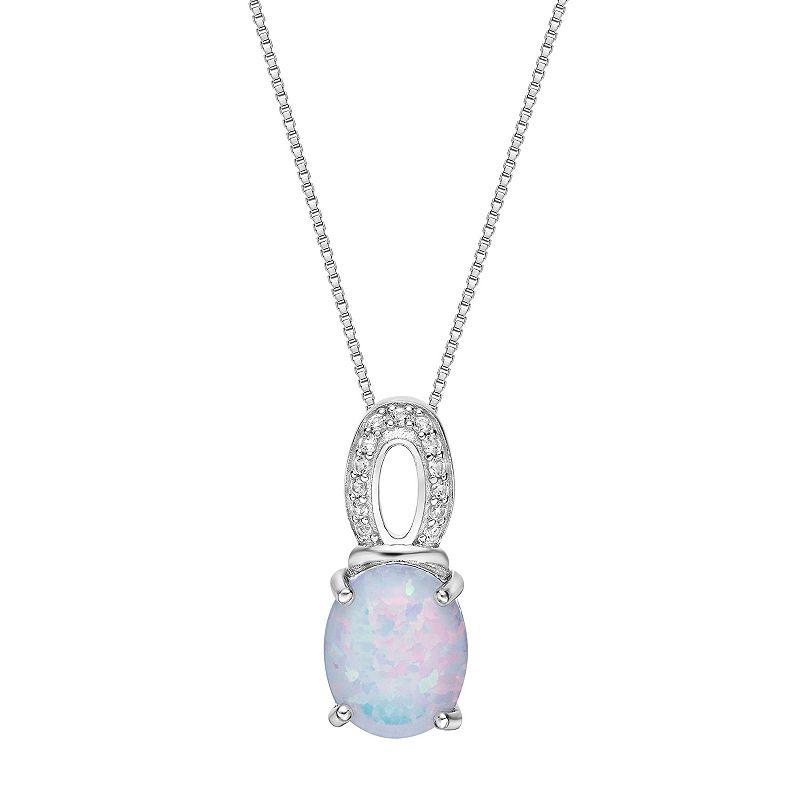 Gemminded Sterling Silver Lab-Created Opal & Lab-Created White Sapphire Pendant Necklace, Womens