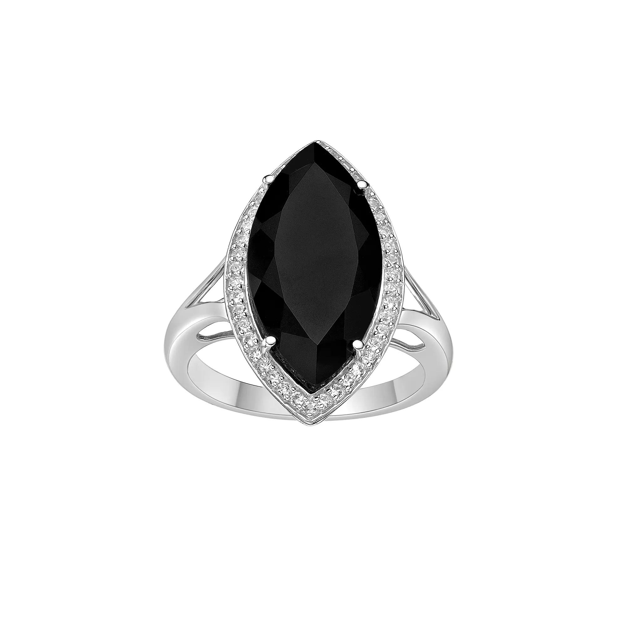 Add eye-catching detail to your look with this stunning Gemminded Sterling Silver Onyx & Lab-Created White Sapphire Ring. Click on this JEWELRY & WATCHES GUIDE to learn about fit, styles, materials and more! Add eye-catching detail to your look with this stunning Gemminded Sterling Silver Onyx & Lab-Created White Sapphire Ring. Click on this JEWELRY & WATCHES GUIDE to learn about fit, styles, materials and more! FEATURES Width: 23 mm Metal: sterling silver Plating: rhodium Finish: polished Packaging: boxedSTONE DETAILS Stone type: onyx, lab-created white sapphire Total weight: 7 1/2 ct. Center stone size: 20 mm x 10 mm Shape: marquise, round Setting: prong Gemstones may have been treated to enhance their appearance. Special care may be required. Please visit our Gemstone Treatment & Special Care Guide for more information. Size: 9. Color: Black. Gender: female. Age Group: adult.