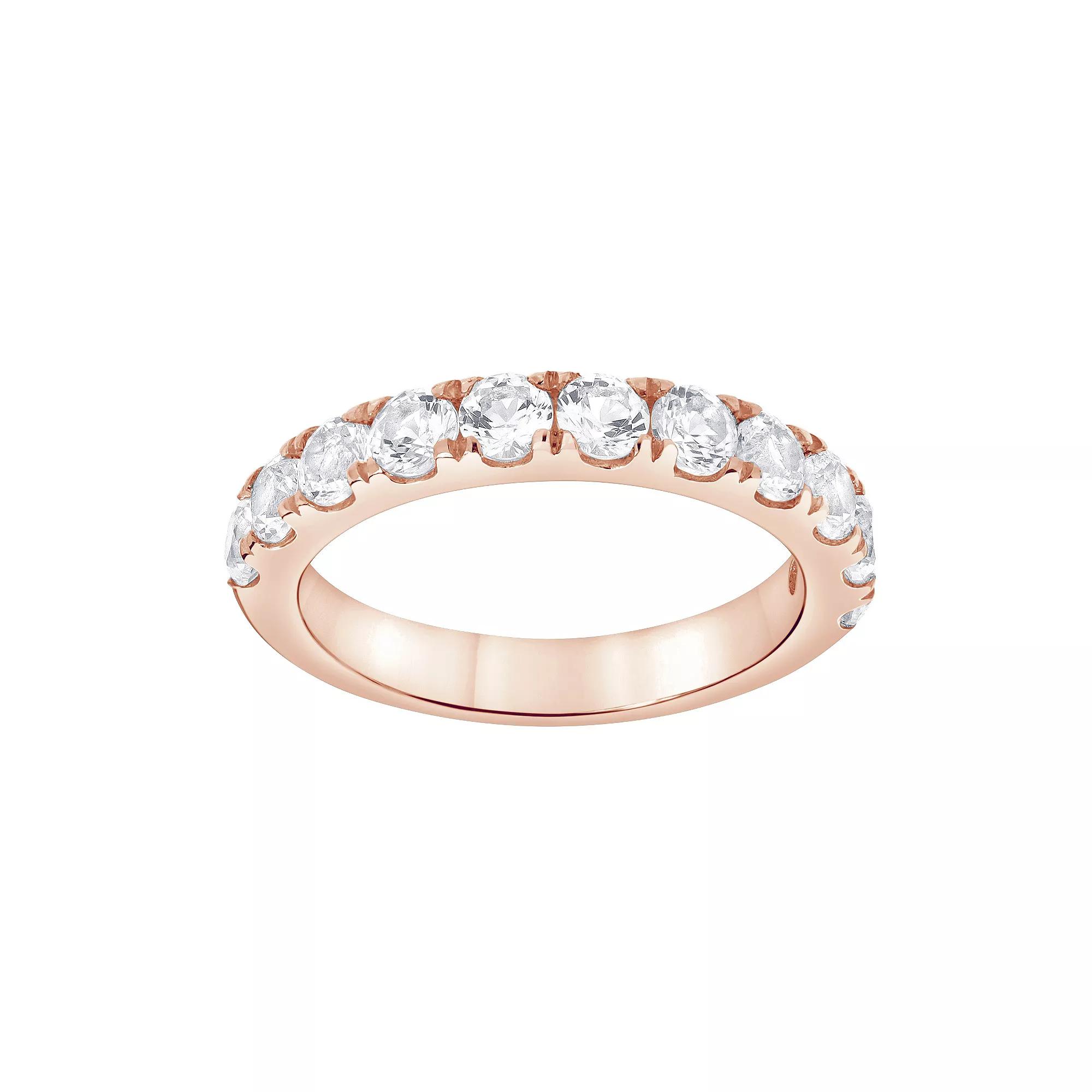 Accessorize in style with this Gemstone Brilliance Lab-Created White Sapphire Ring. Click on this JEWELRY & WATCHES GUIDE to learn about fit, styles, materials and more! Accessorize in style with this Gemstone Brilliance Lab-Created White Sapphire Ring. Click on this JEWELRY & WATCHES GUIDE to learn about fit, styles, materials and more! FEATURES Width: 3.40 mm Shank style: straight Band fit: rounded, comfort fit Nickel free Metal: sterling silver Plating: rhodium, 14k gold flash, 14k rose gold flash Finish: polished Packaging: boxedSTONE DETAILS Stone type: lab-created white sapphire Shape: round Setting: prong Gemstones may have been treated to enhance their appearance. Special care may be required. Please visit our Gemstone Treatment & Special Care Guide for more information. Size: 8. Color: Rose Tone. Gender: female. Age Group: adult.