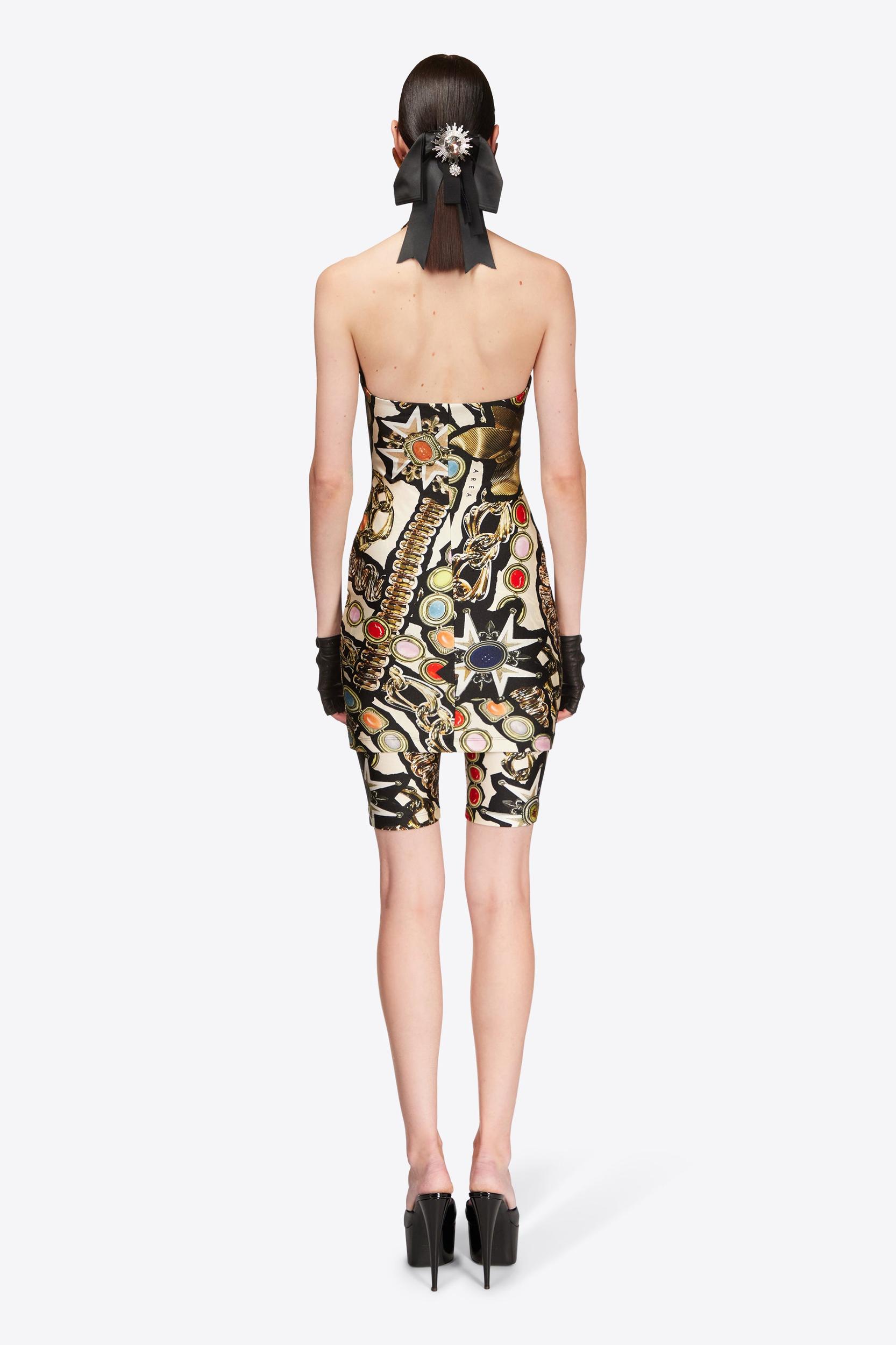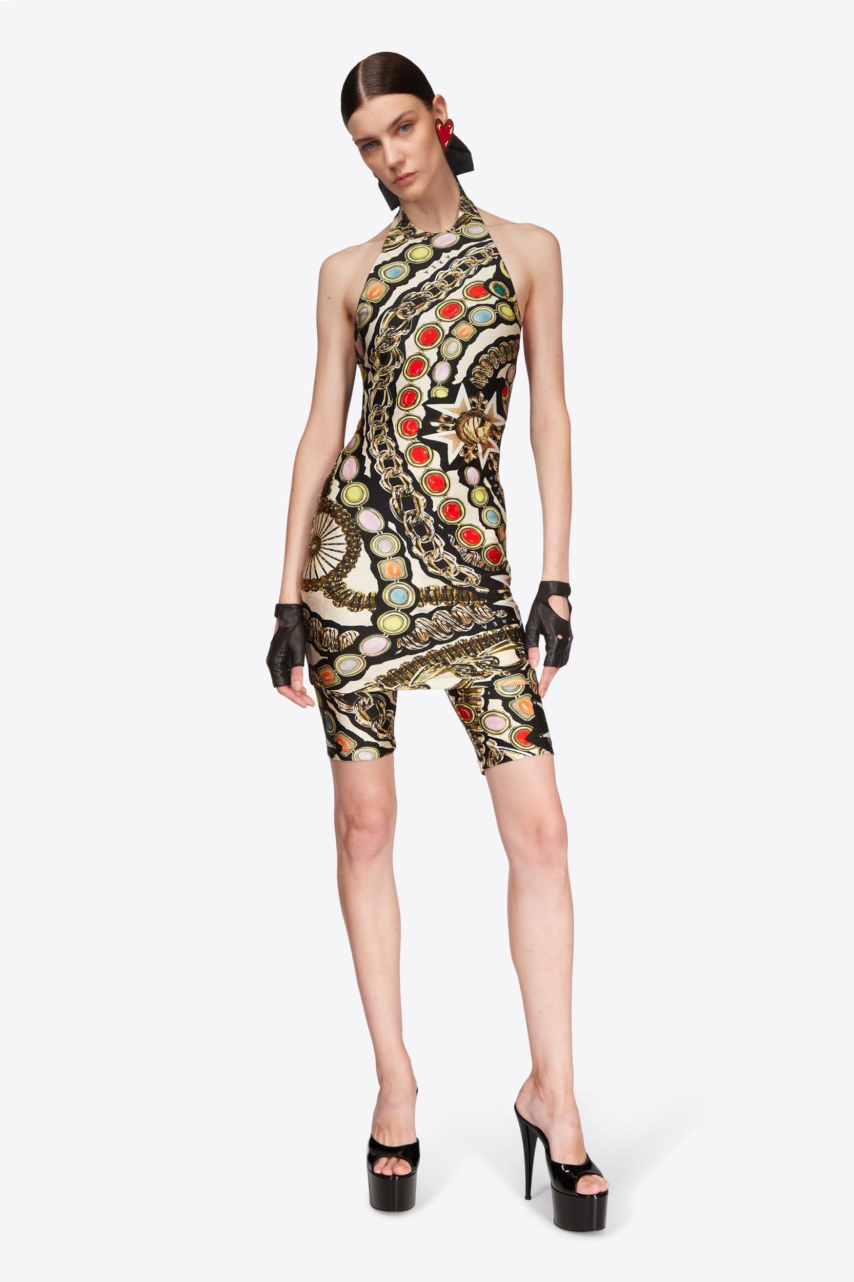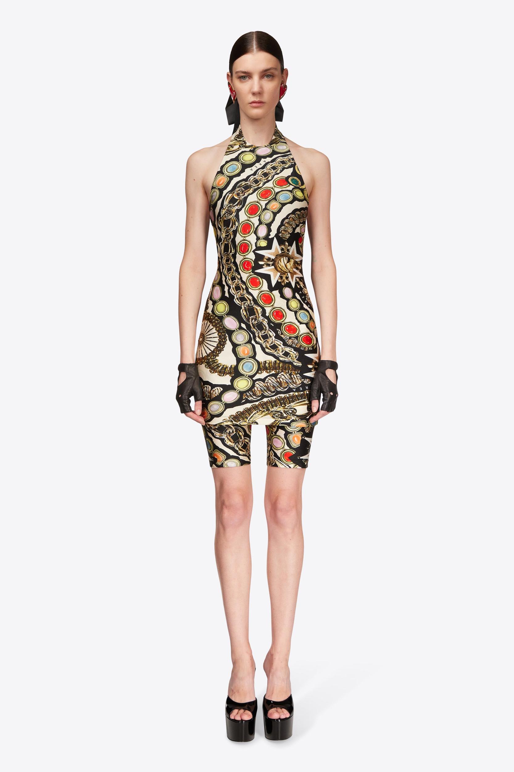 Gemstone Chain Printed Halter Mini Dress