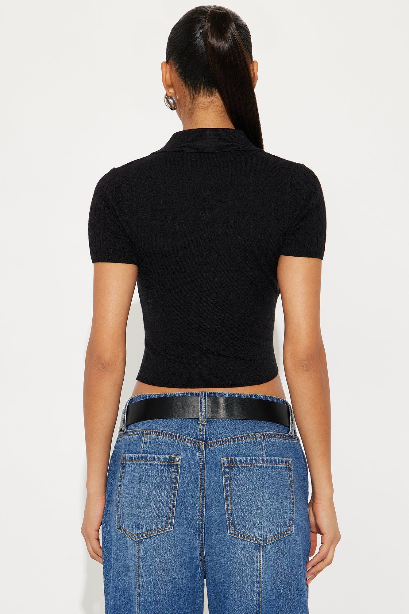 Genae Cable Knit Polo Sweater - Black