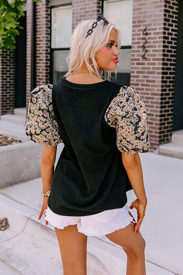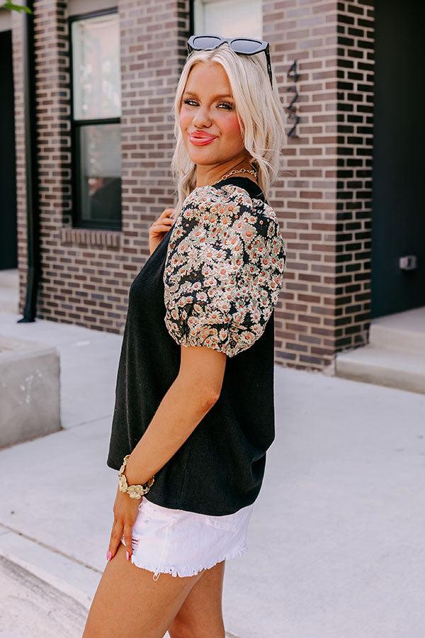 - This unique piece is perfect for a sweet look! - Unlined tight knit material with a ribbed texture - Structured puff sleeves with a floral print and elastic cuffs - A crew cut neckline - A relaxed silhouette that ends in a straight hemline Measurements S : Bust 40", Hip 42", Length 24.5", Sleeve Length 12.5", Waist 41". M : Bust 42", Hip 44", Length 25", Sleeve Length 12.5", Waist 43". L : Bust 44", Hip 46", Length 25.5", Sleeve Length 13", Waist 45".