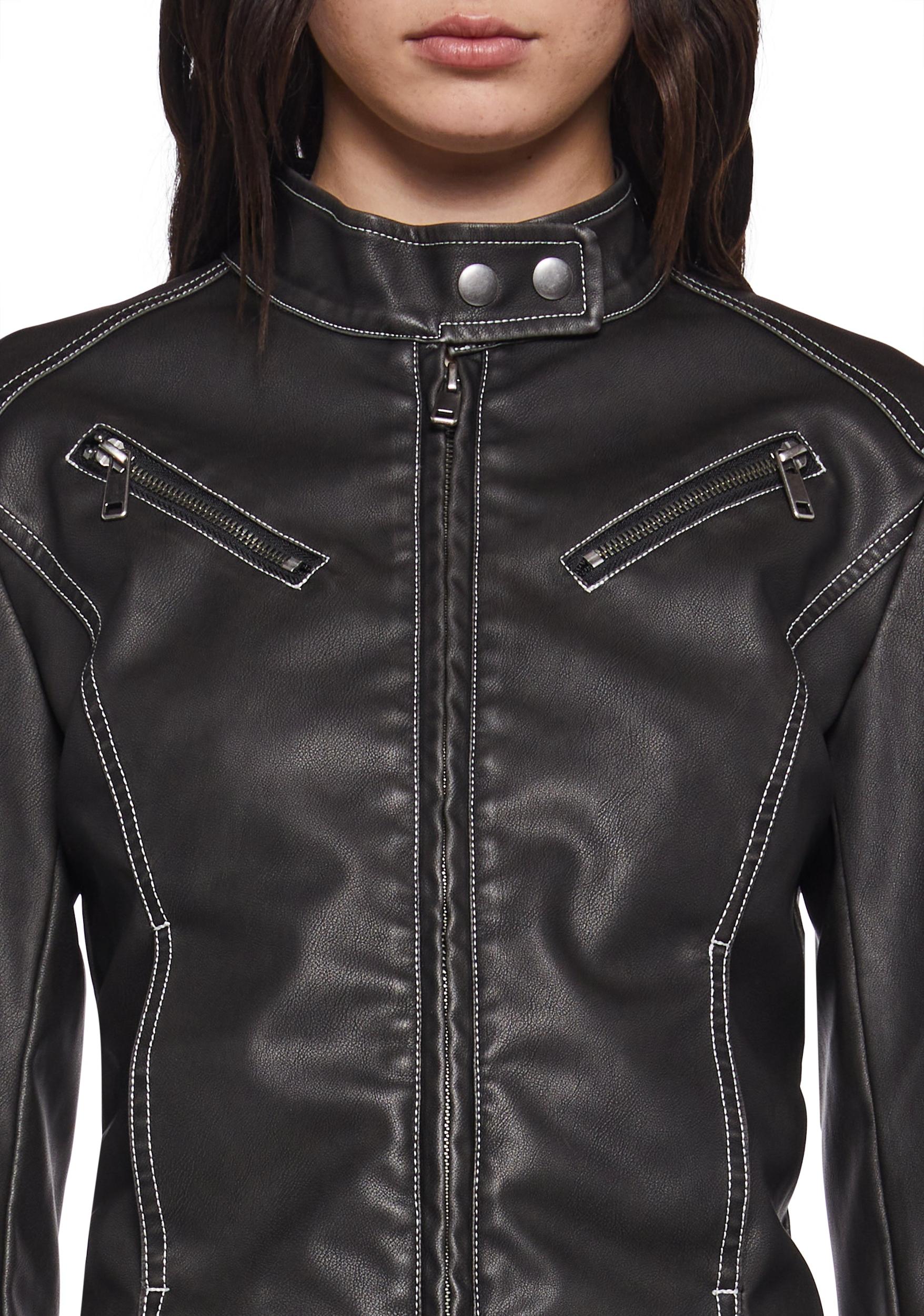 Generation Kiss Washed Vegan Leather Moto Jacket - Black