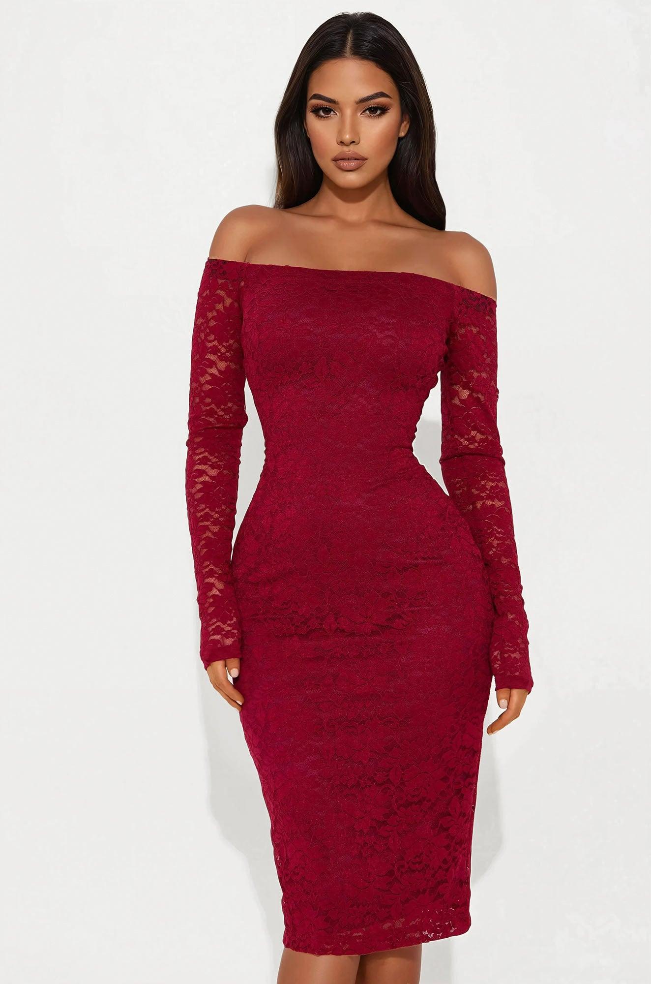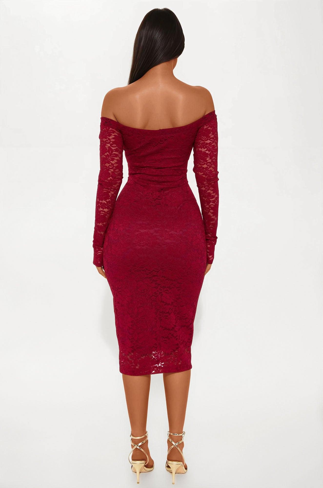 Genesis Lace Long Sleeve Midi Dress - Burgundy Female