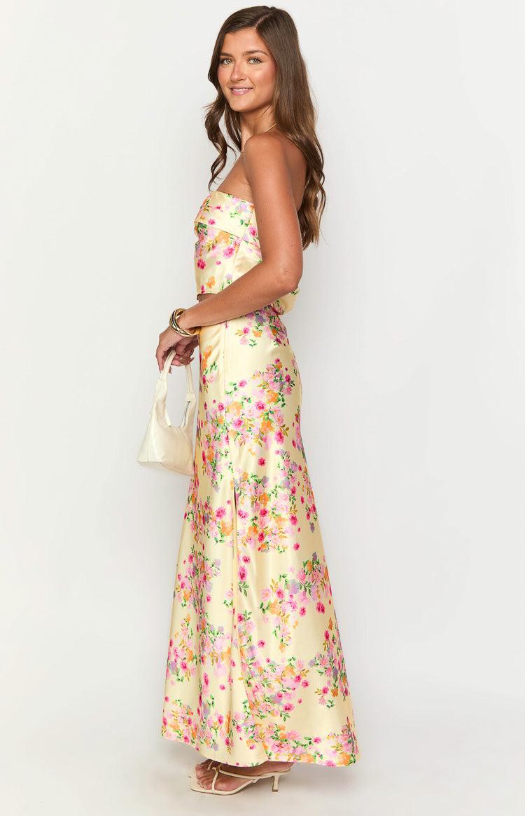 Yellow Floral Satin Maxi SkirtHow to Style:Our Genevieve Yellow Floral Satin Maxi Skirt is the perfect addition to your wardrobe for garden parties or daytime events! The high waisted, bias cut design with a side leg slit creates a flattering silhouette, while the lightweight satin fabric offers both comfort and style. Pair it with a basic cami or the matching Genevieve Yellow Bloom Top for a coordinated, effortlessly chic look!Features: Maxi length Satin-like material Non-stretch material High waisted Invisible zip on side Light weight fabric Side leg slit Bias cut