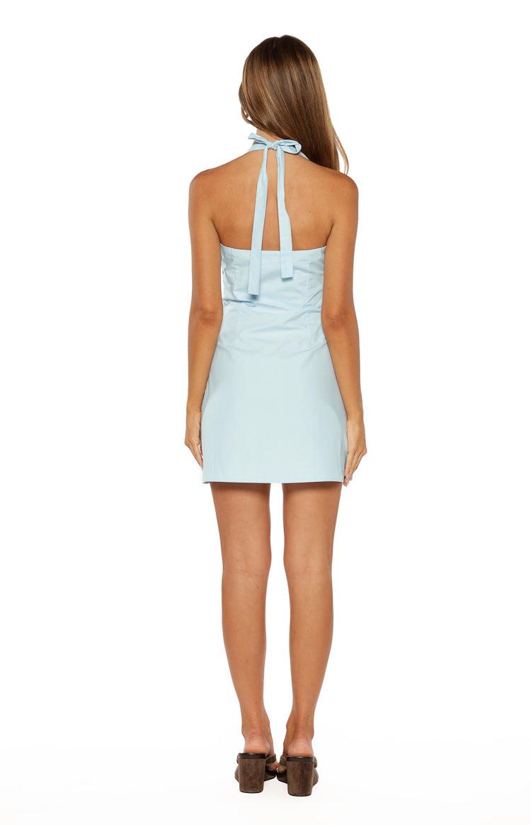 Blue Halter Neck Embroidered Mini Dress How to style:Embrace the sunshine in our Geni Blue Halter Neck Mini Dress, designed for warm days and golden hours. This piece features a delicate embroidered bust detail and a flattering A-line hem that moves beautifully with you. Style this look with white wedges and silver hoops for a polished daytime ensemble. Features: Mini length Fully lined Halter neck tie Embroidered bust detail Front tie V neckline A-line hem Side invisible zipper Perfect for summer, parties, and day events!