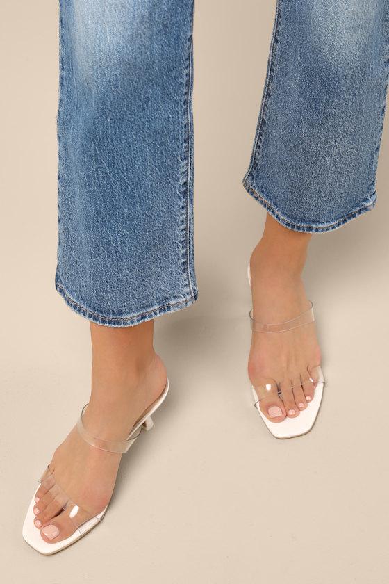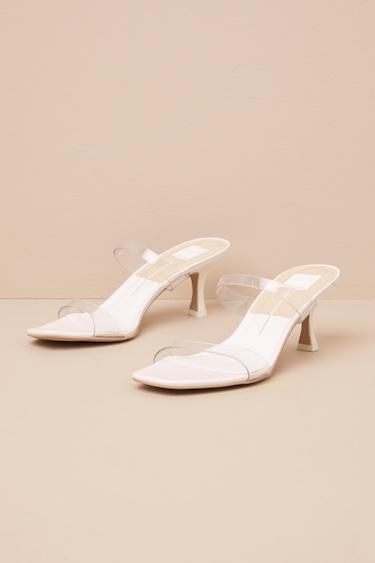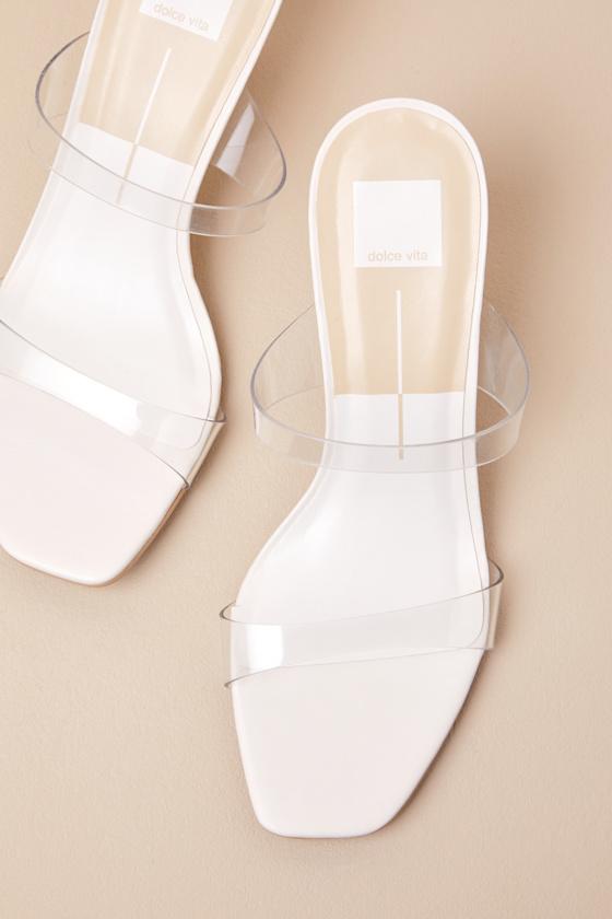 A closet must-have for all those last-minute RSVP looks, these sleek slide-on heels from Dolce Vita always understand the assignment. A smooth faux leather construction shapes a trendy square footbed, topped with a clear vinyl toe strap and matching vamp strap for a modern and versatile design.