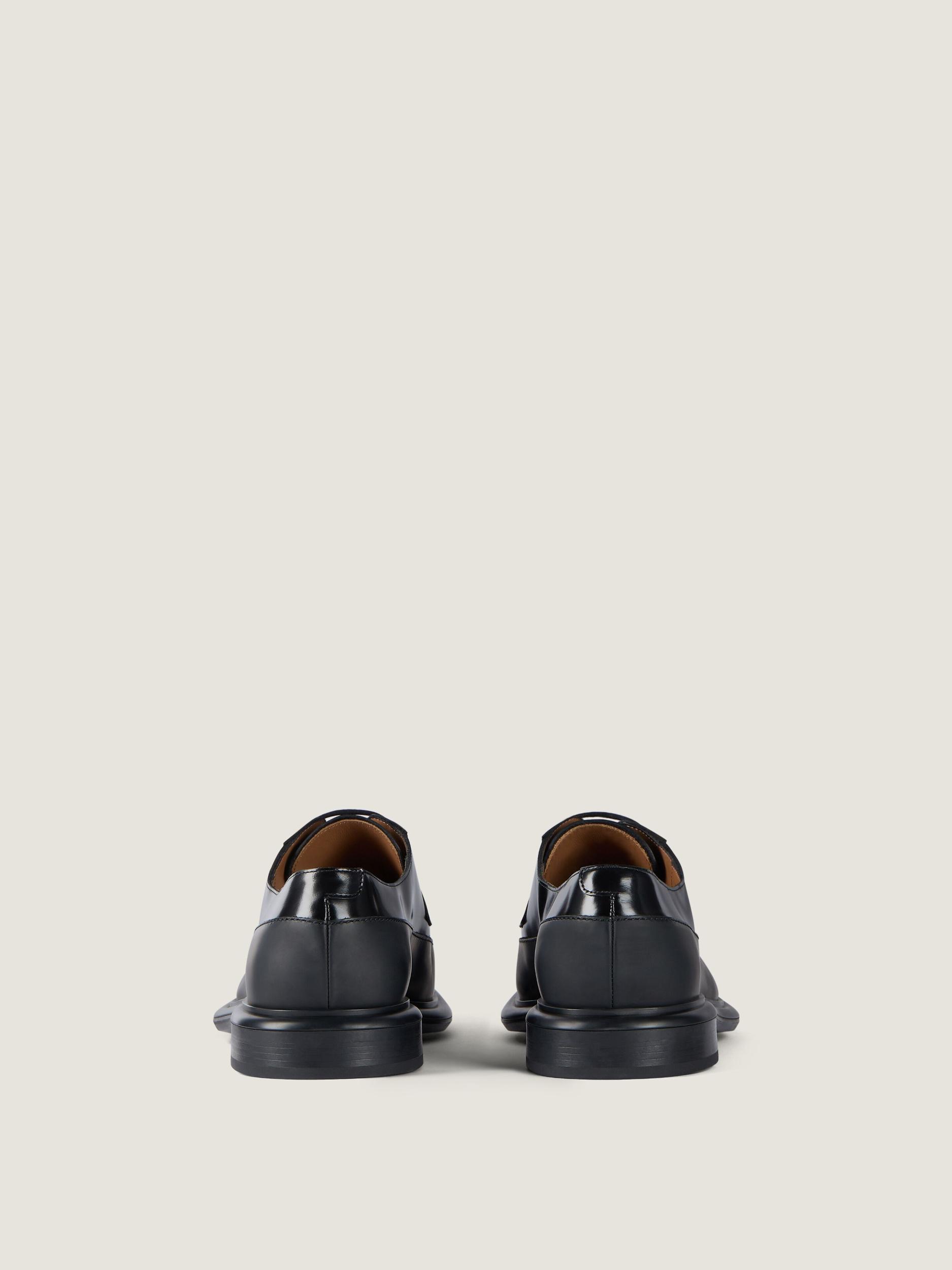 Derby shoes in brushed calfskin leather. Gent line. Handcrafted Opanka construction on the bottom of the boots offering flexibility, comfort, and lightness. GIVENCHY signature debossed on the side of the sole. Golden GIVENCHY Paris signature printed on the leather insole.