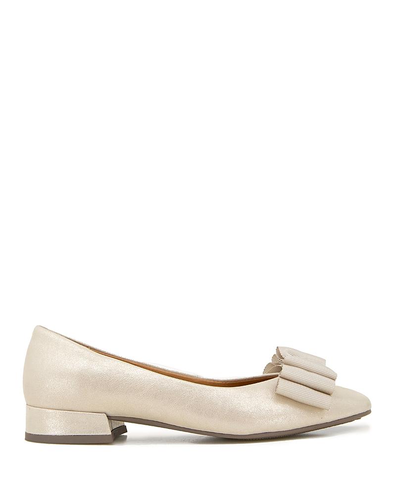 Timeless and versatile, the Gentle Souls by Kenneth Cole Atlas Flats are exclusively designed to offer you an elevated look and effortless comfort all day long. Leather upper with an embellished bow on the vamp. Leather and textile lining. PORON cushioned footbed for elevated comfort and stability. Easy slip-on construction. Semi-round toe silhouette. Stacked heel. Man-made outsole. Imported. Measurements: Heel Height: 1 in Weight: 9 oz Product measurements were taken using size 9, width M. Please note that measurements may vary by size.