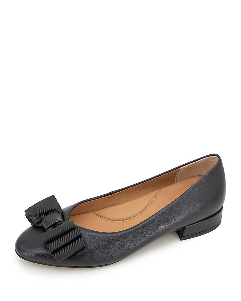 Timeless and versatile, the Gentle Souls by Kenneth Cole Atlas Flats are exclusively designed to offer you an elevated look and effortless comfort all day long. Leather upper with an embellished bow on the vamp. Leather and textile lining. PORON cushioned footbed for elevated comfort and stability. Easy slip-on construction. Semi-round toe silhouette. Stacked heel. Man-made outsole. Imported. Measurements: Heel Height: 1 in Weight: 9 oz Product measurements were taken using size 9, width M. Please note that measurements may vary by size.