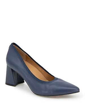 Breathable lining and an elastic topline provide all-day comfort in this pointy-toe pump perched on a cushy footbed and bold block heel. 2 3/4 heel Memory foam cushioning Multilayered, PORON-cushioned footbed with arch support Leather upper and lining/rubber sole Imported