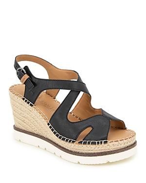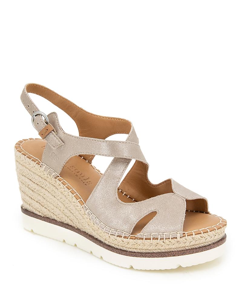 Sleek cutouts and crisscrossing instep straps add modern dimension to an espadrille-inspired sandal set on a jute-wrapped platform and wedge heel. 3 1/2 heel; 1 1/4 platform Adjustable slingback strap with buckle closure Multilayered, PORON-cushioned footbed with arch support Leather upper and lining/rubber sole Imported