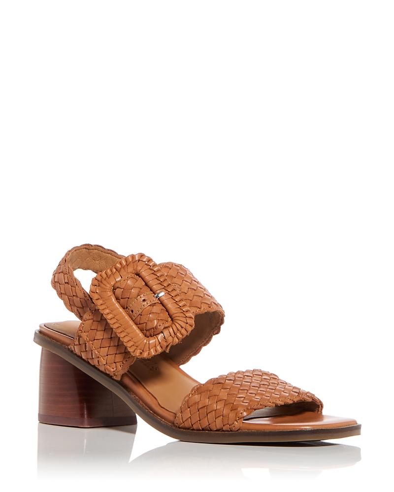 A woven upper lends a boho-inspired aesthetic to a slingback sandal balanced by a squared-off toe and stacked block heel. 2 heel Adjustable strap with buckle closure Removable, PORON-cushioned insole with arch support Leather upper and lining/rubber sole Imported